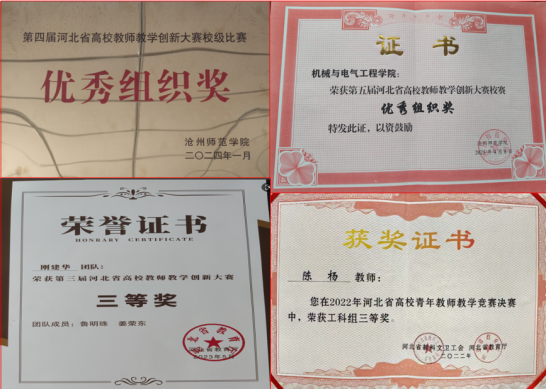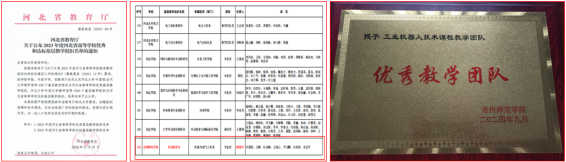 明确专业教研室、学科基础教研室职责和定位,形成年龄、职称、学历结构相对合理的教学科研团队。机电教研室评为河北省高等学校优秀基层教学组织,自动化等6个教研室评为河北省高等学校达标基层教学组织。《工业机器人技术》课程团队被评为校级优秀教学团队。