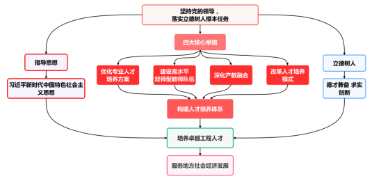 坚持以习近平新时代中国特色社会主义思想为指导,贯彻党的二十大及二十届二中、三中全会精神和党的教育方针,聚焦立德树人根本任务,通过优化专业人才培养方案、建设高水平双师型教师队伍、深化产教融合、改革人才培养模式等举措,培养“德才兼备·求实创新”卓越工程人才,服务地方经济发展。