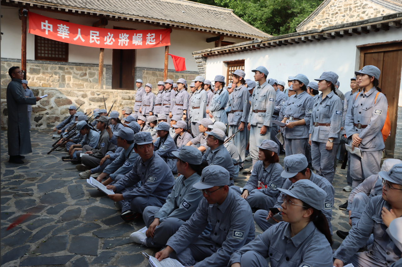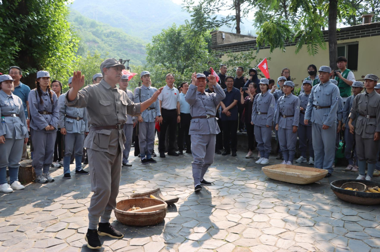 讲好过去事,培养未来人。研学中,学员们观看了《华北联大在阜平》情景剧,走访了台峪乡平房村华北联大旧址深入了解了华北联合大学在晋察冀艰苦卓绝的学习、生活和斗争情况。“捧起书本是学生,背包当板凳,膝盖作课桌;拿起钢枪是战士,反‘扫荡’,打游击。”在平房村,党员干部们化身联大社会科学部、文艺部、青年部、工人部学生,参演《我的青春在华北联大》情景剧,重回战火纷飞的青春岁月。在互动式观看和沉浸式参与中学悟“团结、前进、刻苦、坚定”的联大校训精神和“英雄的事业,插在敌人心脏上的一把剑”的历史内涵。