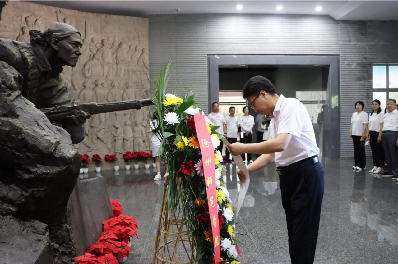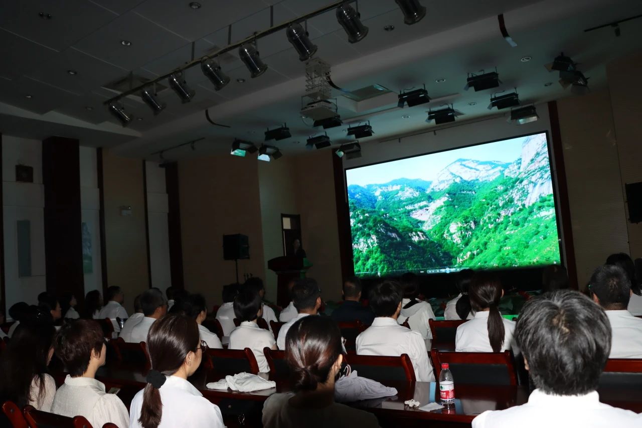 巍巍太行山,红色晋察冀。学员们走进阜平城南庄晋察冀边区革命纪念馆,深切缅怀老一辈无产阶级革命家的丰功伟绩。纪念馆大厅塑像前,党委书记云电军代表学校向烈士敬献花篮,全体学员共唱国歌,鞠躬致敬。纪念馆内,讲解员饱含深情地讲述红色故事,一座座庄严的雕塑、一件件斑驳的展陈、一段段可歌可泣的英雄故事令学员们备受教育。报告厅内,红色音乐党史课涤荡心灵。音乐党史课以“晋察冀模范根据地”作为精神指引坐标,以百年党史作为时间脉络,借助丰富的历史影像资料、经典音乐作品、真实的访谈素材和讲解员生动的讲述,全方位、立体化地呈现了中国共产党带领晋察冀边区军民英勇奋战、浴血拼搏的壮丽征程。