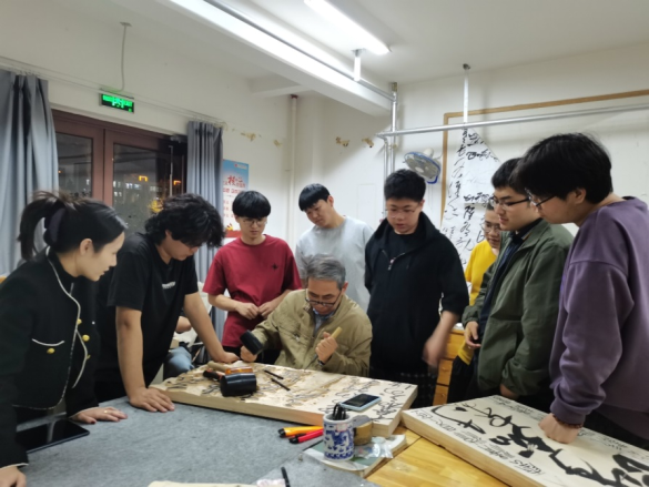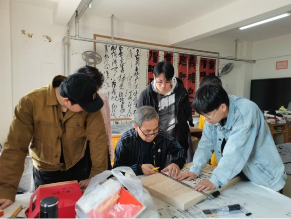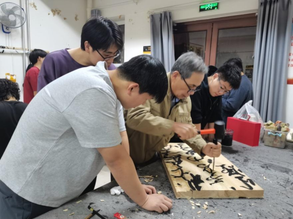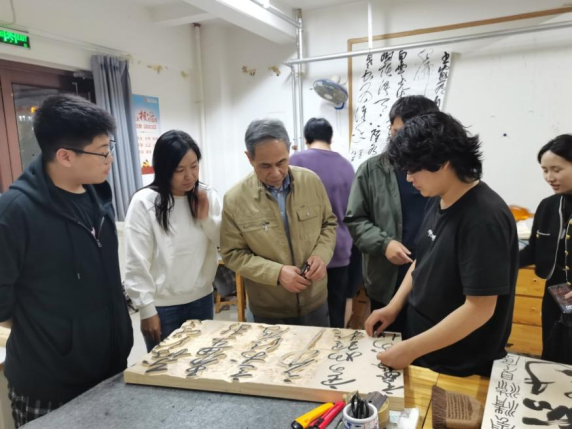田雨潇总结了文学院刻字艺术讲习班的开展情况,回顾了自3月份展览征稿发布以来,文学院领导高度重视,迅速成立了现代刻字艺术讲习班,聘请到著名书法家张之先生为主讲导师,并选拔出9名学生参加讲习班学习。为期两个月的讲习班,张之先生坚持每周两次的固定指导,风雨无阻无私奉献,让参训学生受益匪浅。参训的9名同学从零开始接触刻字艺术,在张之先生指导下进步迅速,均创作出了高水平的艺术作品。 在本次河北省书法家协会主办的“纪念中国人民抗日战争暨世界反法西斯战争胜利80周年”河北省第七届刻字艺术展中,9位同学的精品创作均通过了严格评审,全部入展,其中书法学专业学生高海涛、陈朝伟作品获奖(全省获奖作者共10人,其中沧州2人,均为新葡萄官网学生),张菁、宋叶园、付忠澄、裴瑞中、徐正日、刘乘玮、于晴等作品入展。此次刻字展中,沧州地区获奖入展共20人,新葡萄官网学生占据半壁江山,这是新葡萄官网书法学专业刻字创作的一次集中展示,为学生的拓展课程学习打开了新的思路,是专业培养应用型、实践性的一次成功实验。