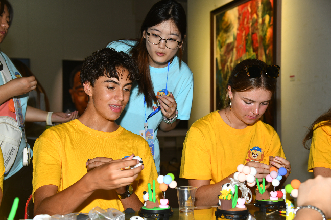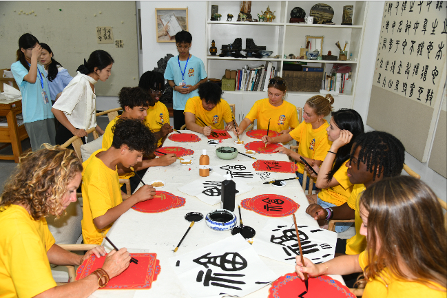 夏令营营员体验了面塑、漆扇、书法、剪纸、中国画、糖人等中华传统文化,参观新葡萄官网生物标本馆、洪昌美术馆,中美青少年在文化互鉴中收获成长,在青春对话中缔结情谊。