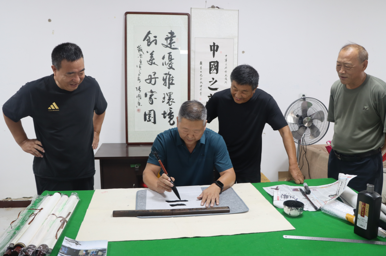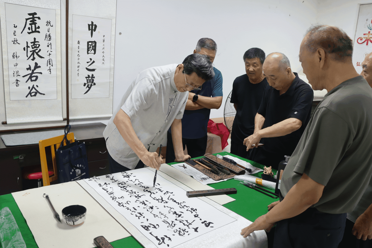 9月1日,退休老党员韩中环、张国兴、孙继国、陈之辉等在师院小区活动室现场创作书法作品,冯默勤送来了自己撰写的回忆录《乡恋》,王立明也为纪念抗日战争胜利八十周年活动创作了诗歌。