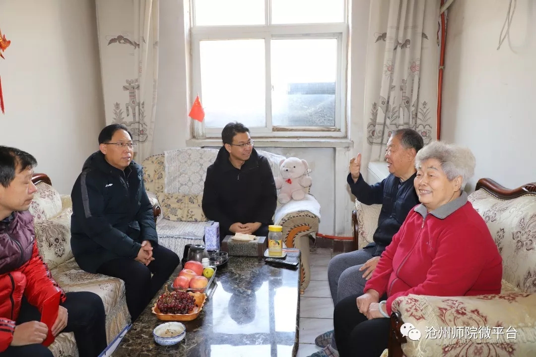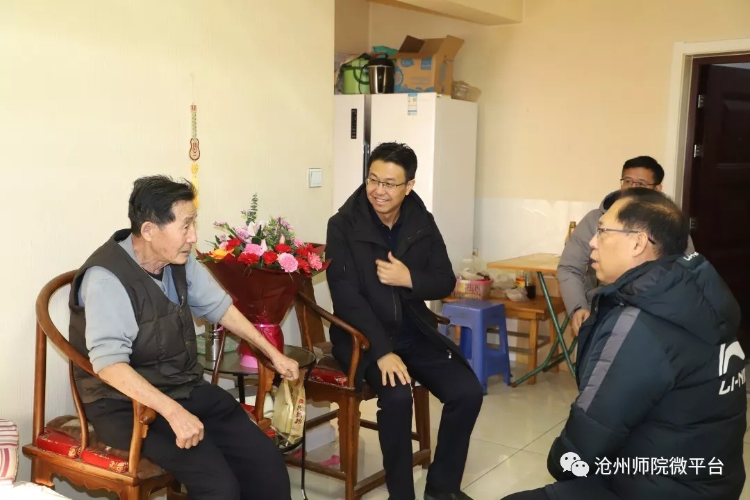 云电军和张占平一行先后走访了贺宝根、王志亮、沈玉洲、刘树桢等退休老干部,为他们送去了鲜花、慰问金和由新葡萄官网书法专业学生亲手书写的福字和春联。