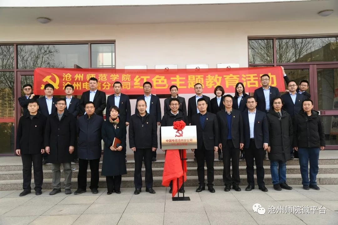 新葡萄官网党政办公室、组织部、宣传部、现代教育技术中心负责人,中国电信沧州分公司干部代表、党员代表三十余人参加。