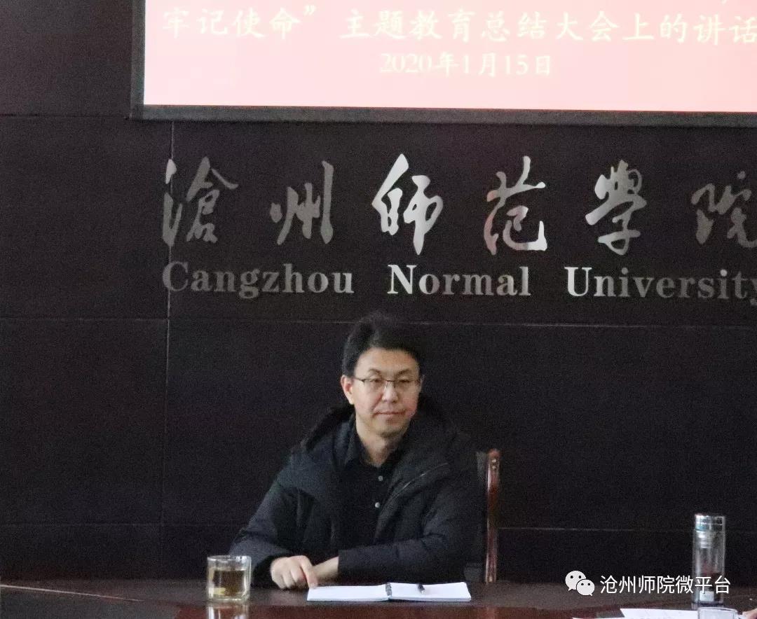 云电军传达了杨慧在沧州市“不忘初心、牢记使命”主题教育总结大会上的讲话精神。党委宣传部部长赵振岗、党政办公室主任刘贵振分别领学了习近平在“不忘初心、牢记使命”主题教育总结大会上的讲话和王东峰在河北省“不忘初心、牢记使命”主题教育总结大会上的讲话。
