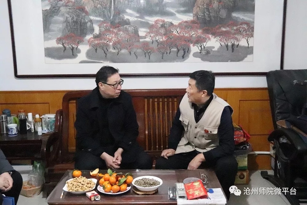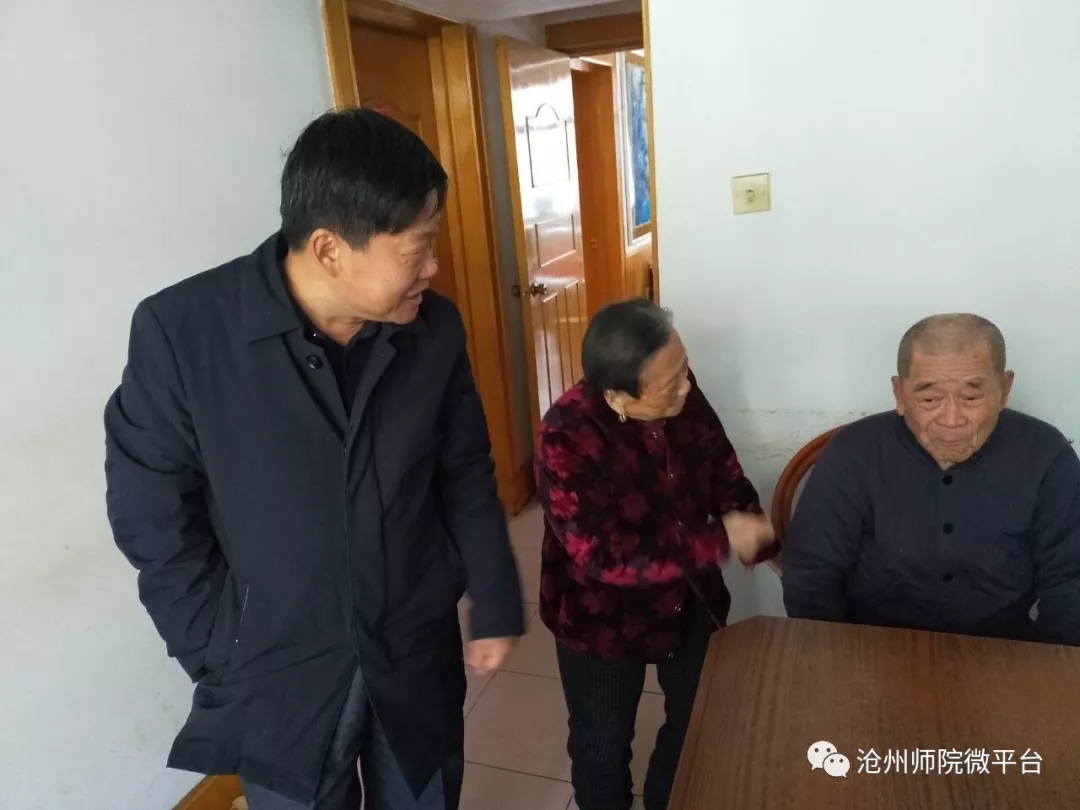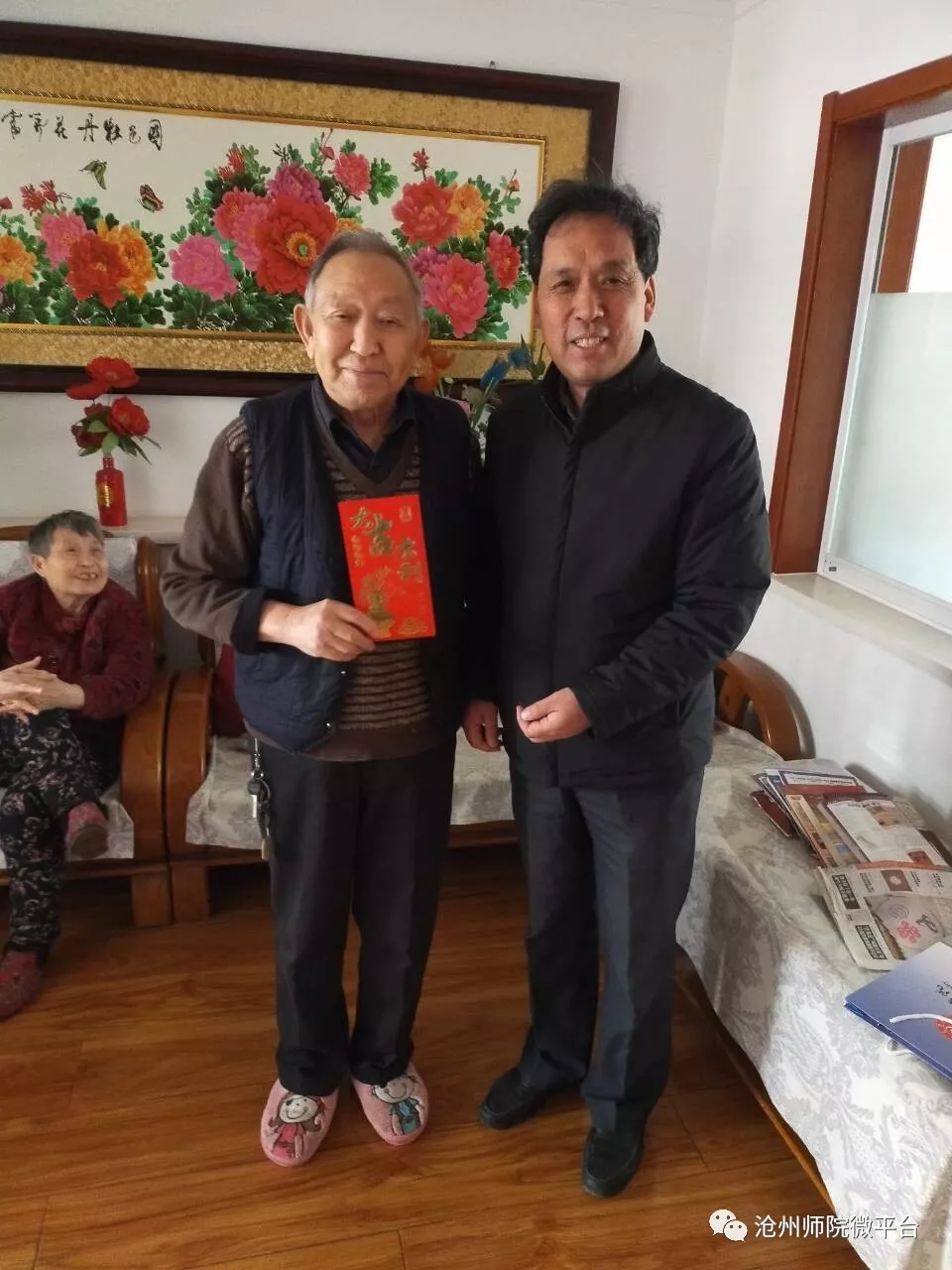 校党委班子成员王双库、姜忠明、高颖、周振平、范小振、彭学君分别到新葡萄官网在沧的退休老干部家中慰问,为老干部送上节日的祝福,并亲手为他们赠送了慰问金和由新葡萄官网书法专业学生手写的春联、福字。