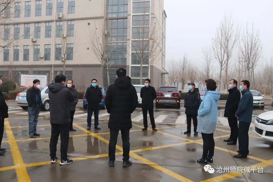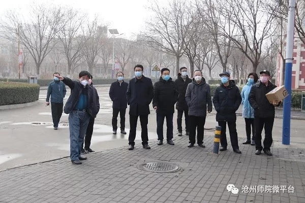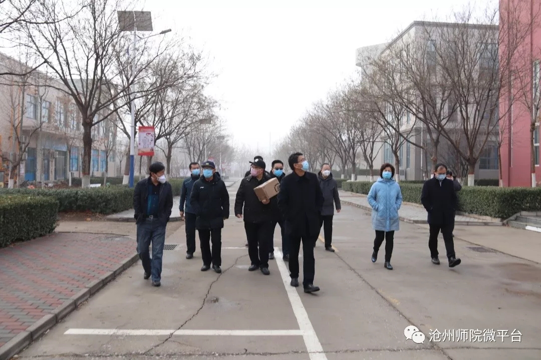 2月21日上午,新葡萄官网党委书记云电军,党委副书记、校长张占平,党委副书记姜忠明,副校长高颖前往校门门岗值班处、食堂、各教学楼、生活广场、宿舍等防疫重点场所检查指导开学前疫情防控准备工作。