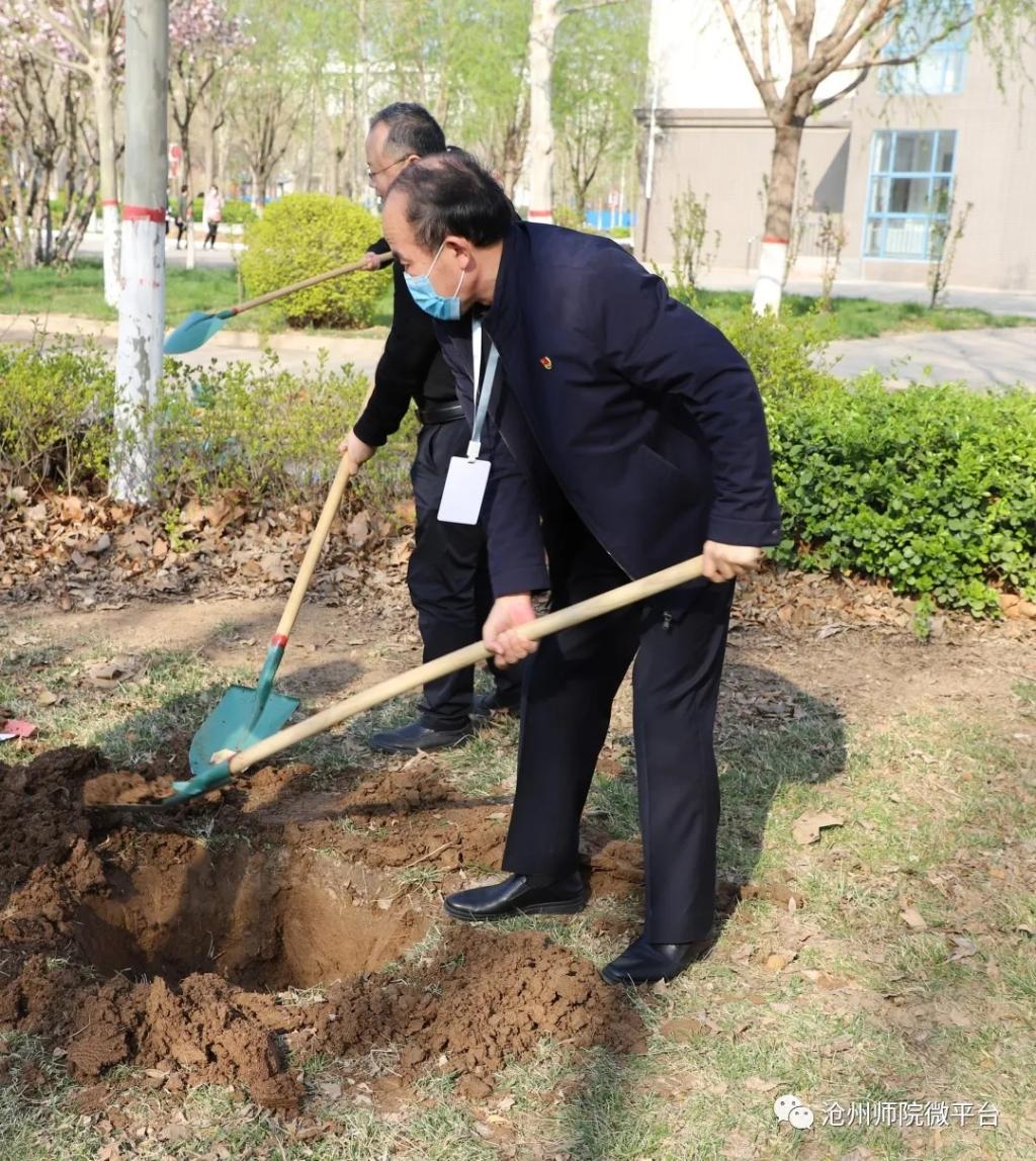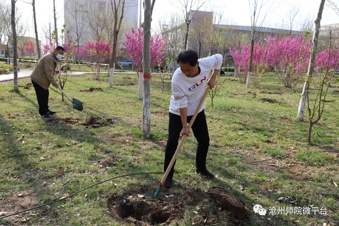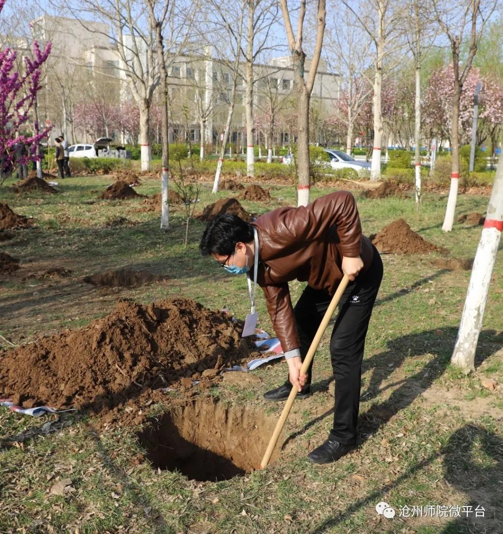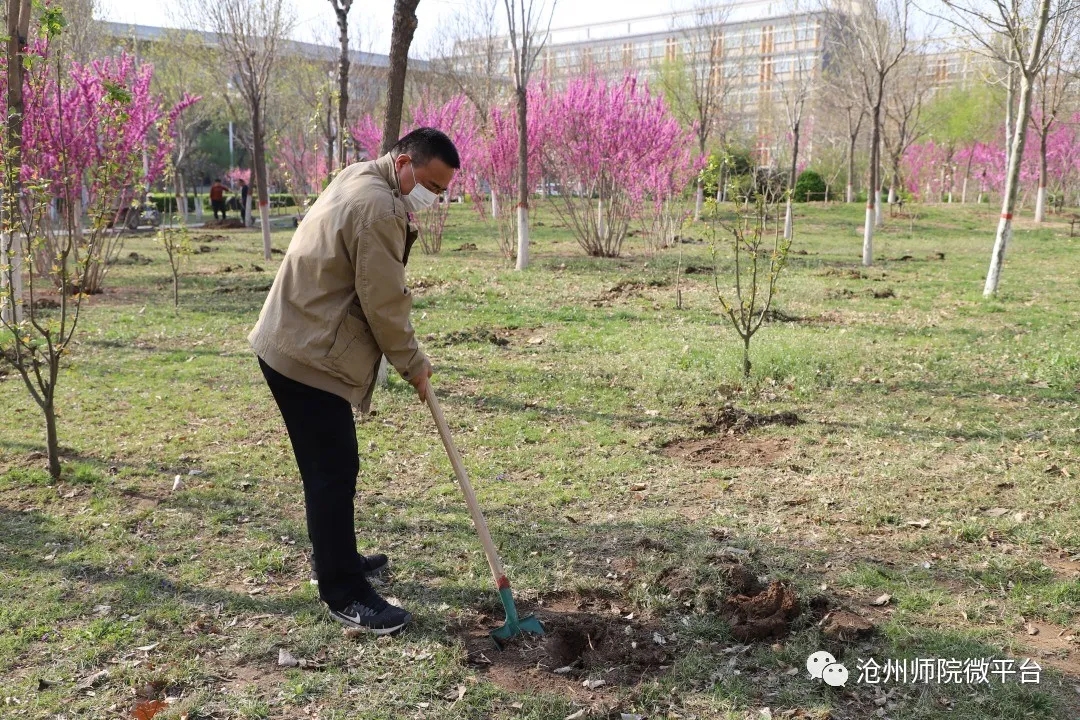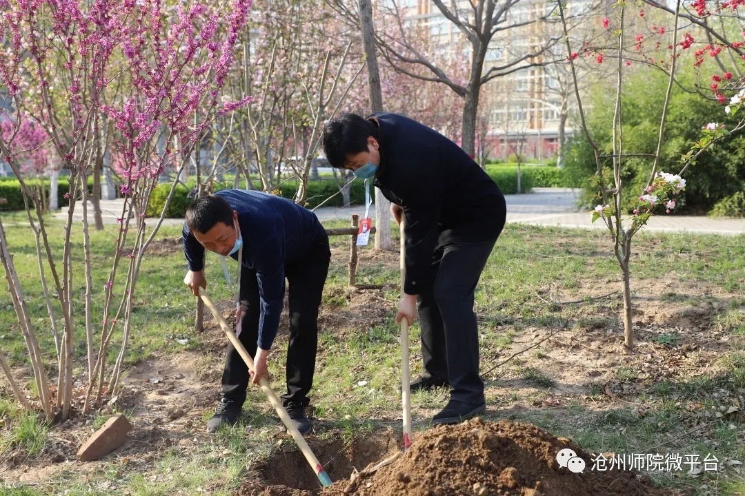 参加植树活动的干部教师在校园中种下了100余棵树,为师院的校园增添了一片春色。