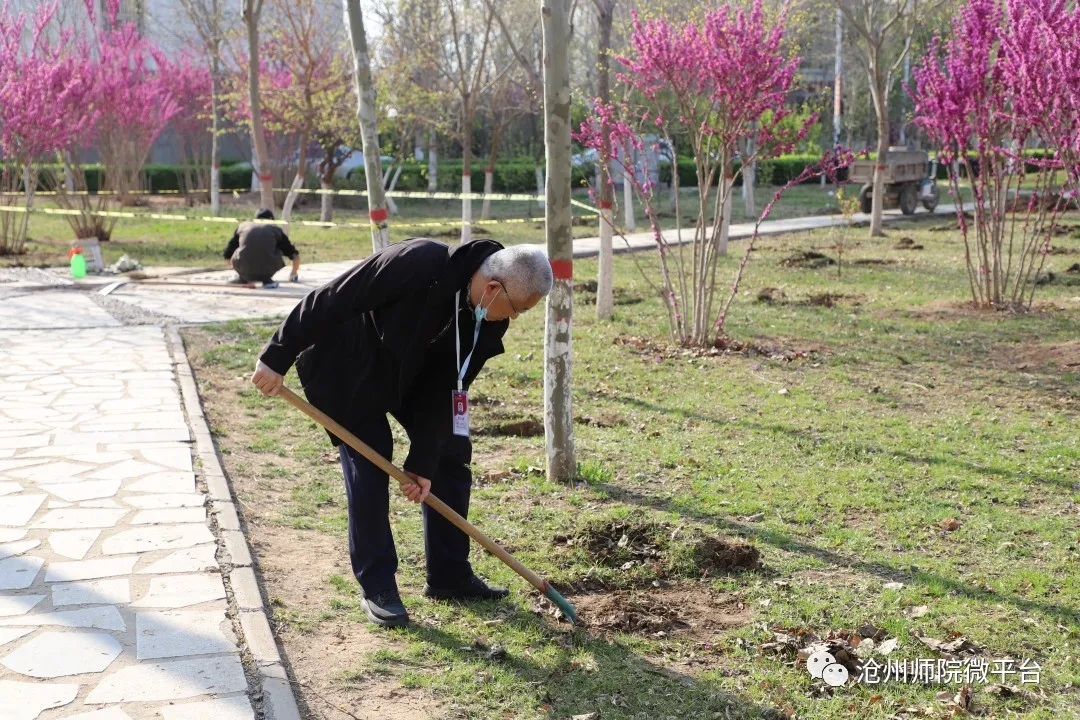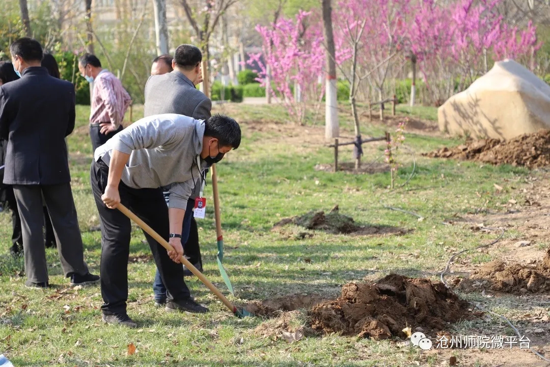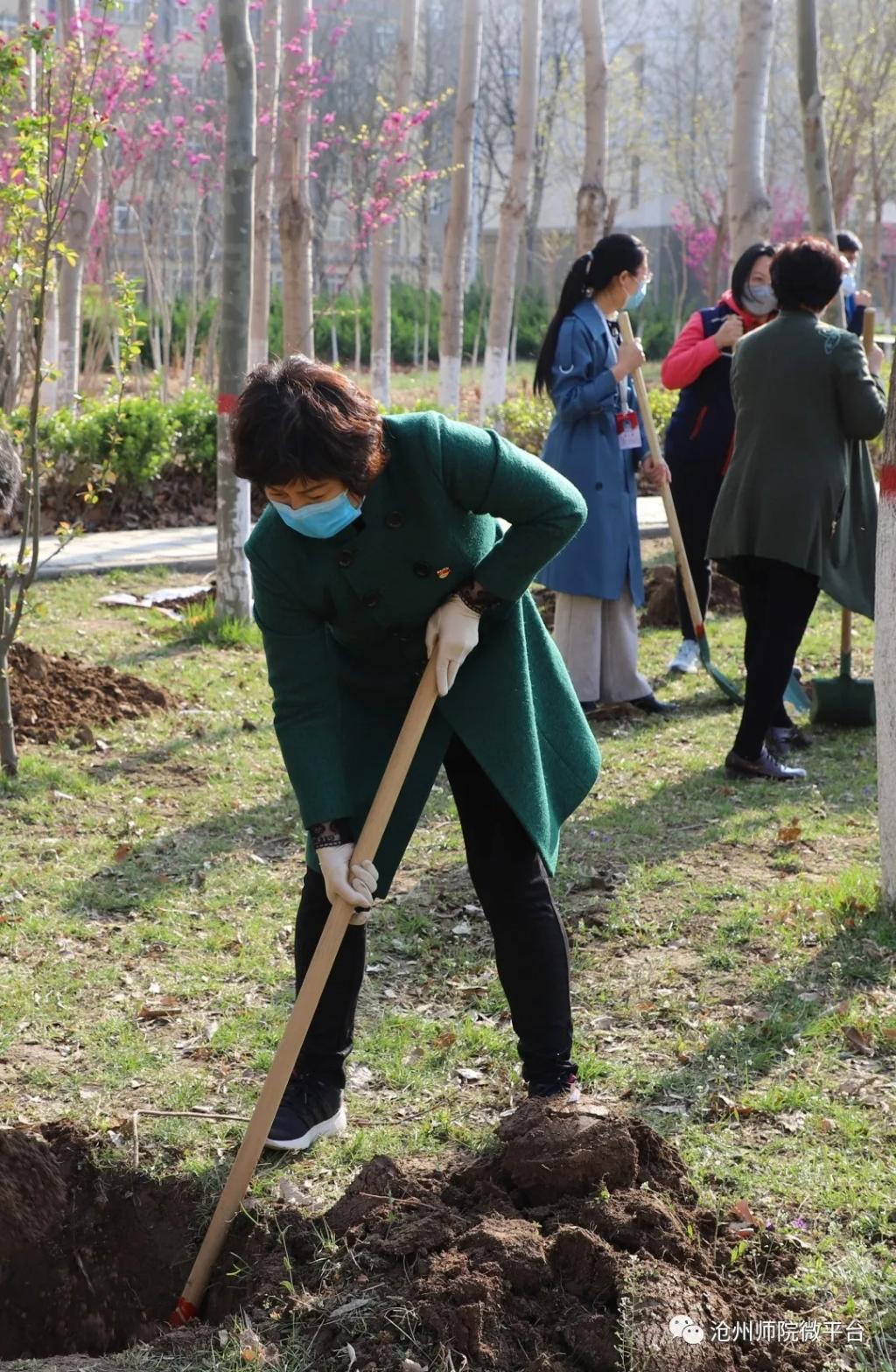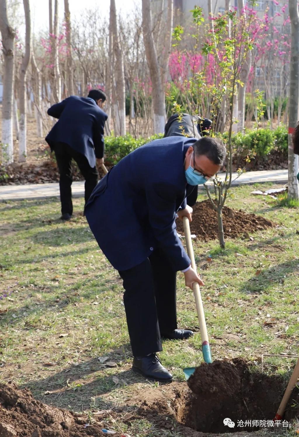 参加植树活动的干部教师在校园中种下了100余棵树,为师院的校园增添了一片春色。