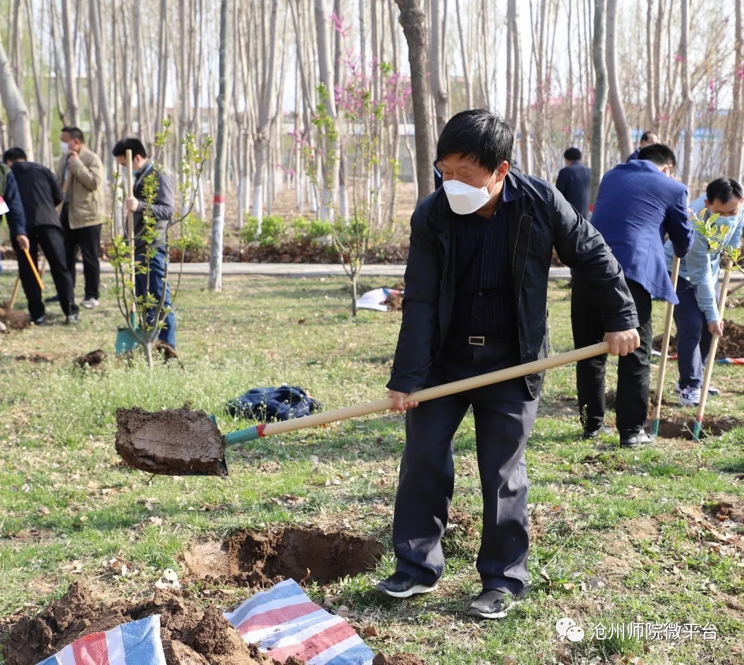 4月2日,新葡萄官网开展义务植树活动。校领导张占平、王双库、姜忠明、高颖、周振平、彭学君、谢云岭参加了本次植树活动。