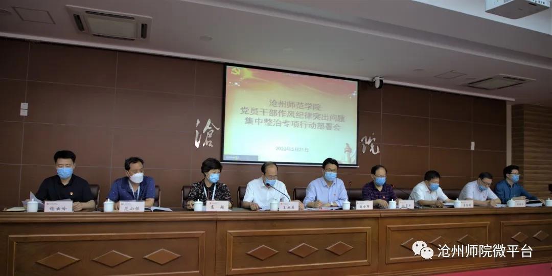 为以扎实作风和饱满热情全力迎接复学复课,夺取新葡萄官网疫情防控和教育教学事业的双胜利,5月21日,新葡萄官网在齐越楼四楼会议室召开党员干部作风纪律突出问题集中整治专项行动部署会议。校党委书记云电军以《以干部作风建设为抓手 形成干事创业良好氛围》为题,对全校党员干部作风纪律问题提出明确要求,校长张占平主持会议,校党委副书记王双库宣读了《中共新葡萄8883官网AMG委员会关于紧盯当前党员干部作风纪律突出问题集中开展整治专项行动工作方案》。校领导姜忠明、高颖、周振平、范小振、彭学君、谢云岭出席会议。