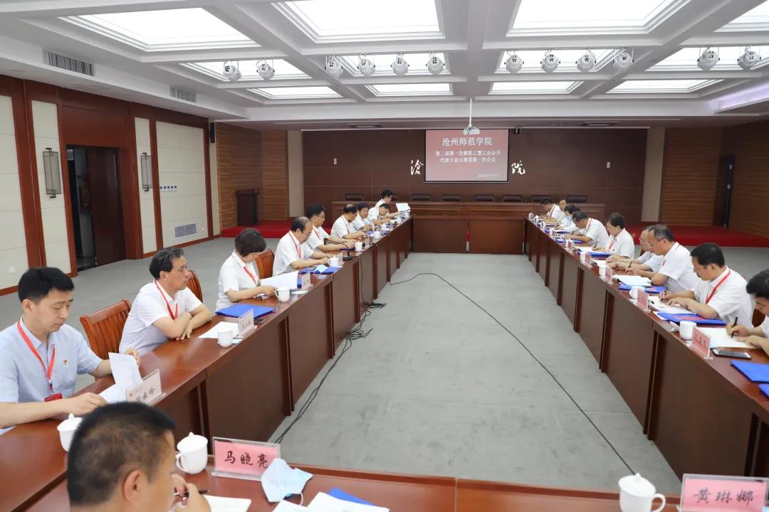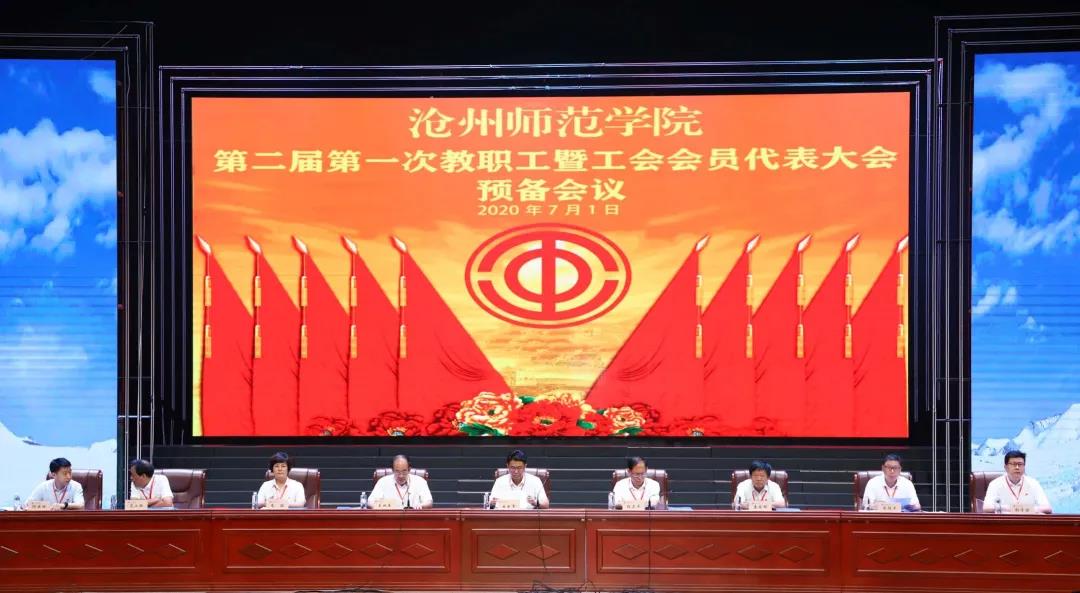 新葡萄8883官网AMG第二届第一次教职工暨工会会员代表大会预备会议于7月1日下午16:10在齐越大讲堂召开,校领导云电军、张占平、王双库、姜忠明、高颖、周振平、彭学君、谢云岭出席会议,会议由副书记王双库主持。