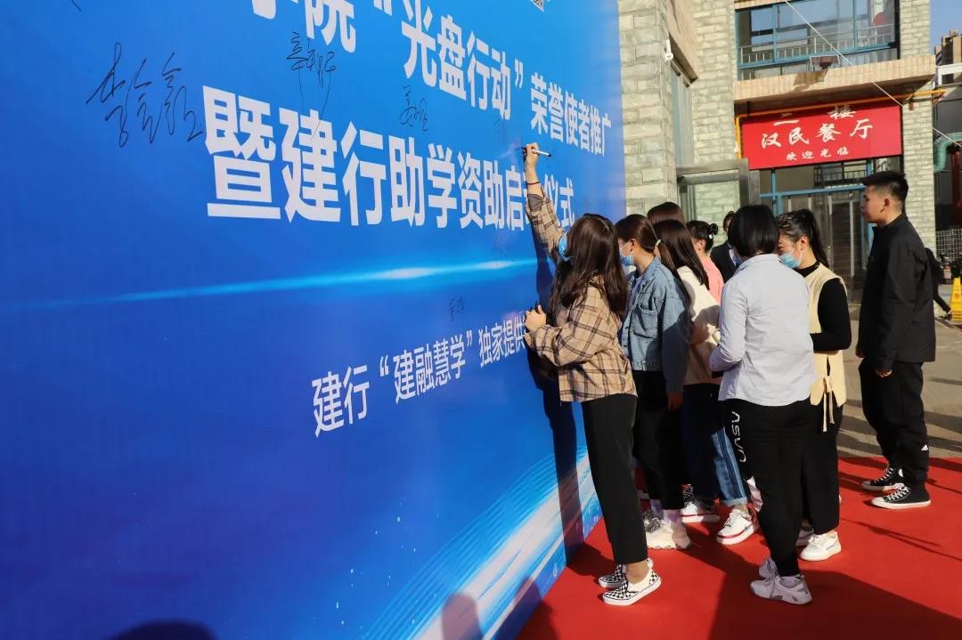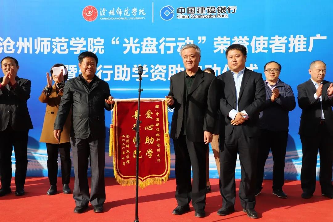 10月21日,新葡萄官网与中国建设银行沧州分行共同组织的“光盘行动荣誉使者”推广活动在二食堂门前举行。即日起,走在“光盘行动”前列的师院学子不仅能获得物质奖励,更将在校园评优活动中获得助力。