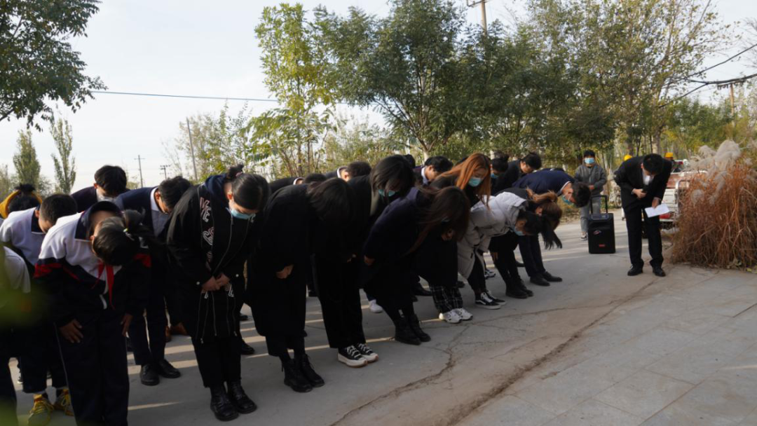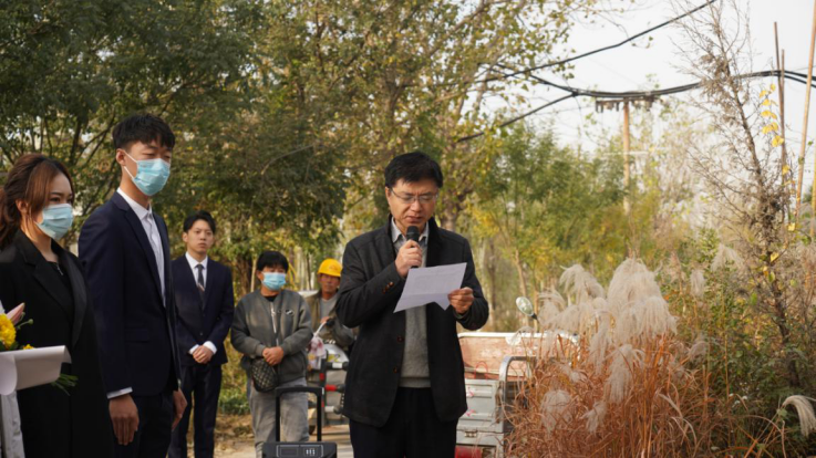 为表达对齐越先生的崇敬之情,作为捐赠仪式的重要环节,齐越传媒师生专程到姜庄子村扫墓,并在红旗广播站进行了播音。活动中,齐虹女士通过线上平台与齐越房东吴大娘的孙媳妇互致亲切问候,并通过网络播读了亲自为此次活动撰写的文章。文中回忆了齐越先生在姜庄子村心系村民建设广播的心路历程和自己到姜庄子村劳动的情景。最后,齐虹朗诵了母亲杨沙林饱含深情的诗《情系姜庄翠柏》并祝愿姜庄子红旗广播站越办越好。