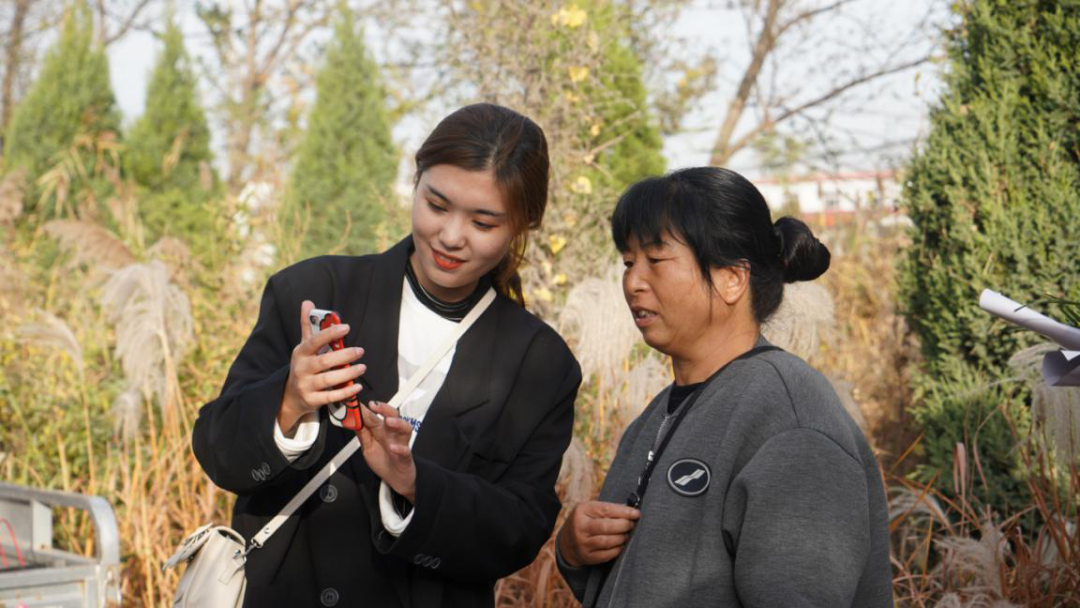 在学生的帮助下,齐虹女士与房东吴大娘的孙媳妇进行视频连线