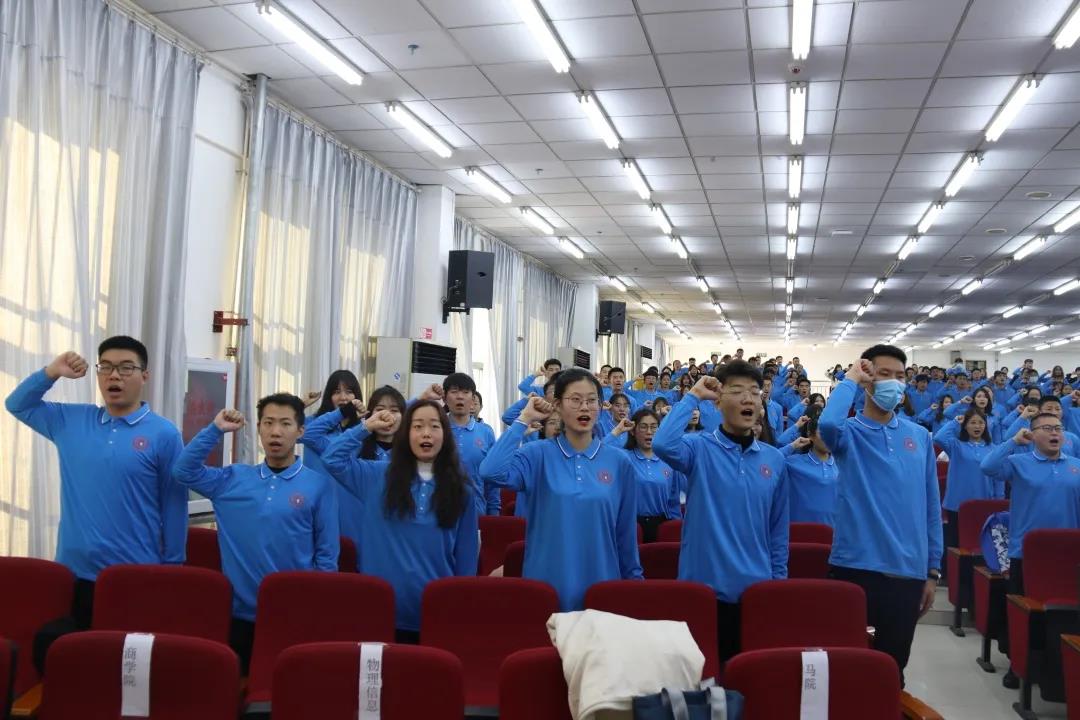 大会发布了新葡萄8883官网AMG青马班班旗,班徽。全体学员高举右拳,面向班旗、班徽宣誓。