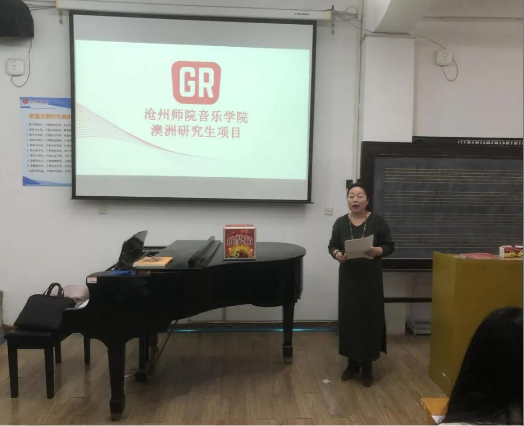 为积极推进新葡萄官网教育对外开放进程,进一步拓宽学生海外升学空间,11月12日,国际交流学院邀请澳洲GR group集团公司河北分部负责人李励进行澳大利亚音乐学院硕士项目专场宣讲。音乐学院院长郭玉华主持,国际交流学院院长韩丽梅出席宣讲会。