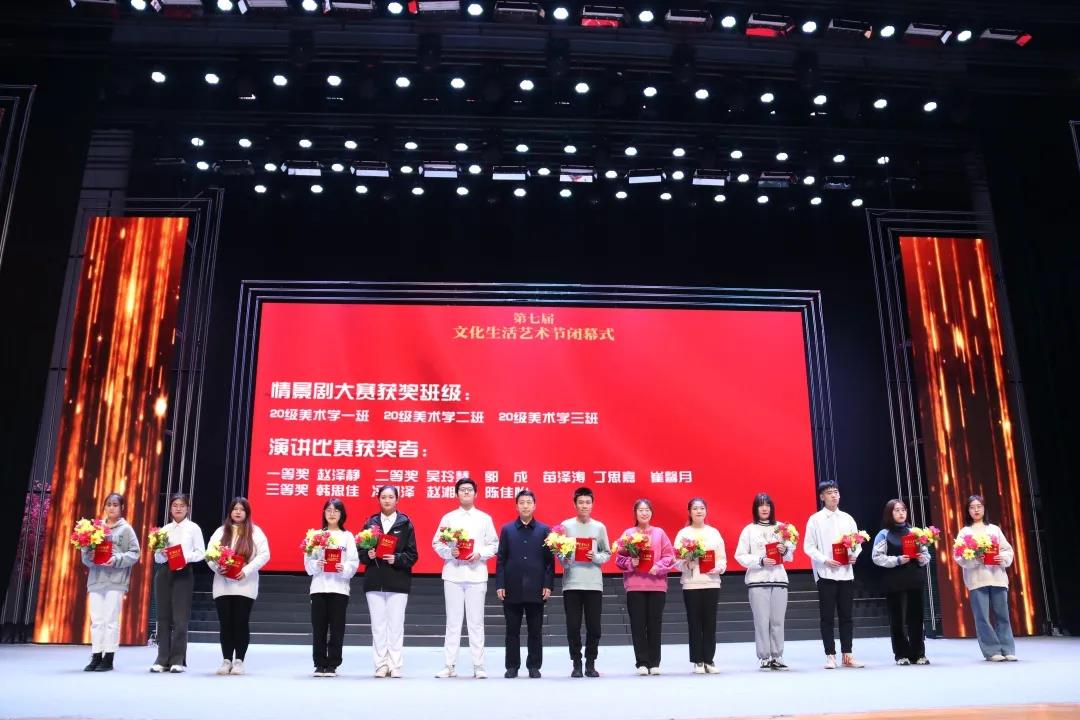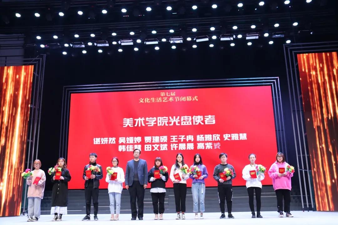 11月27日,新葡萄官网美术学院在齐越大讲堂举办第七届文化生活艺术节闭幕式。校党委书记云电军,党委副书记王双库,副校长高颖,纪委书记谢云岭出席并颁奖。