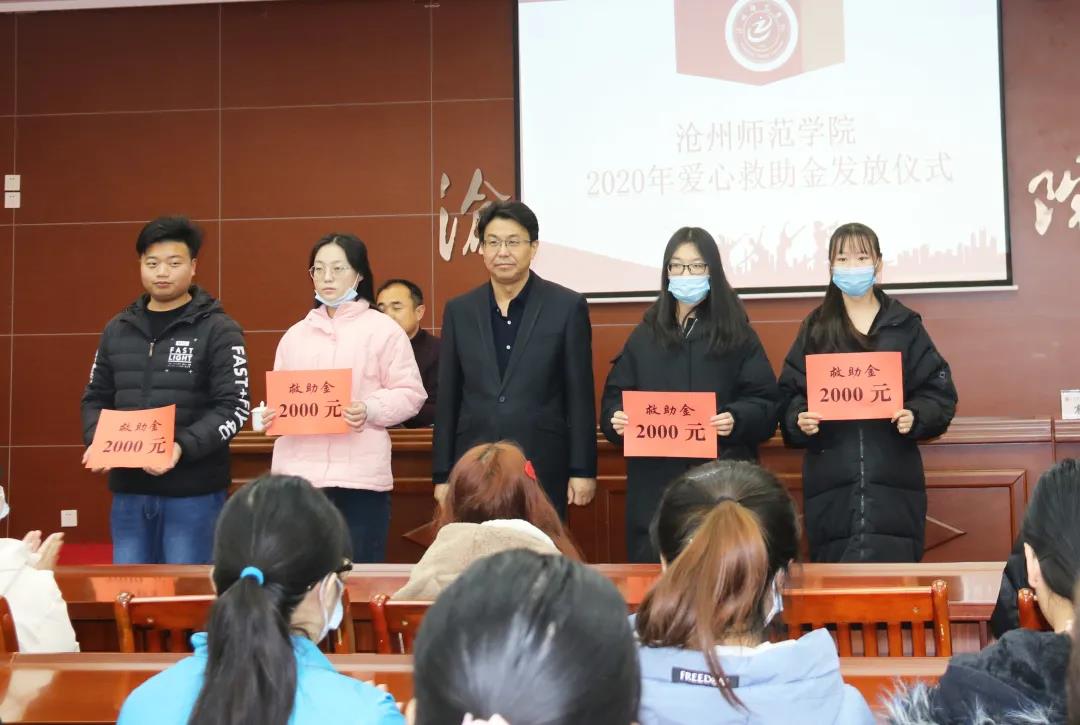 12月8日下午,新葡萄官网在齐越四楼会议室举行2020年爱心救助金发放仪式。校党委书记云电军、副校长高颖出席并为受助同学发放救助金。