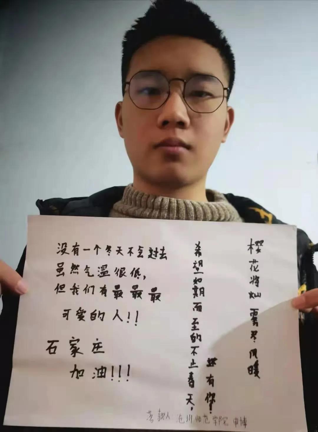 沧州师院的学子们在全国各地一起为河北、为石家庄送上祝福。愿山河无恙,人间皆安。