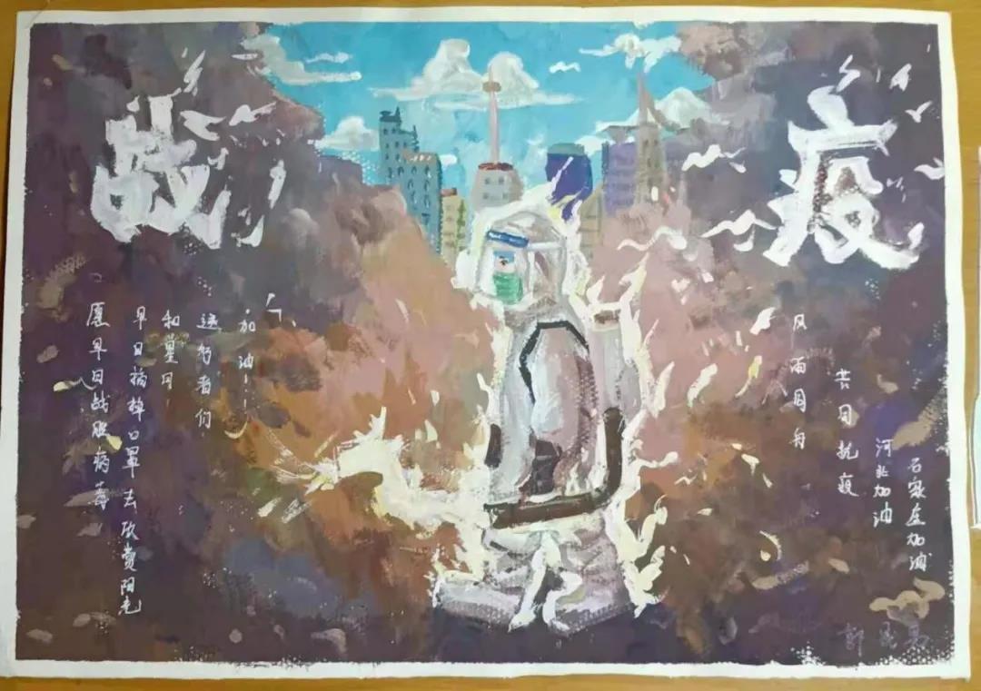 本期作品出自美术学院石家庄籍学子之手,他们作为本次疫情的亲历者,更加真切地感受到了逆行英雄的伟大,志愿者的不易和来自于国家、社会、学校等各个层面的关心。因此,每幅作品都笔触真挚、饱含深情。下面我们一起来欣赏吧!