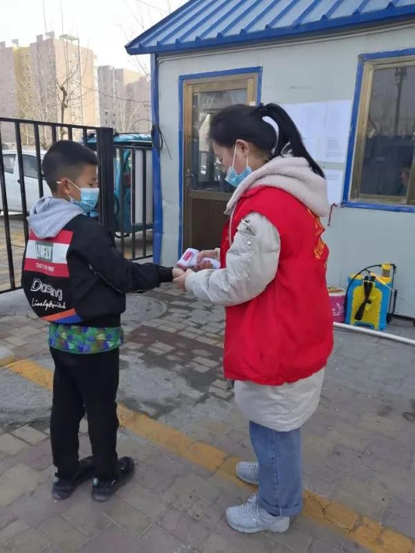 作为志愿者,卢子怡协助测量体温并且登记,每天还会定时进行消毒。早晚温度低,却正赶上下班的人多,随之需要测量登记的工作也不断。零下几度的寒风像针一样刺痛她的皮肤,双手已然麻木。有位阿姨看到她冻得又红又肿的手,心疼地说到:“闺女,快到屋里暖和一会吧。”而她却毫不在意地和阿姨开玩笑:“没事阿姨,我属兔子的爱跳,跳跳就不冷了。”