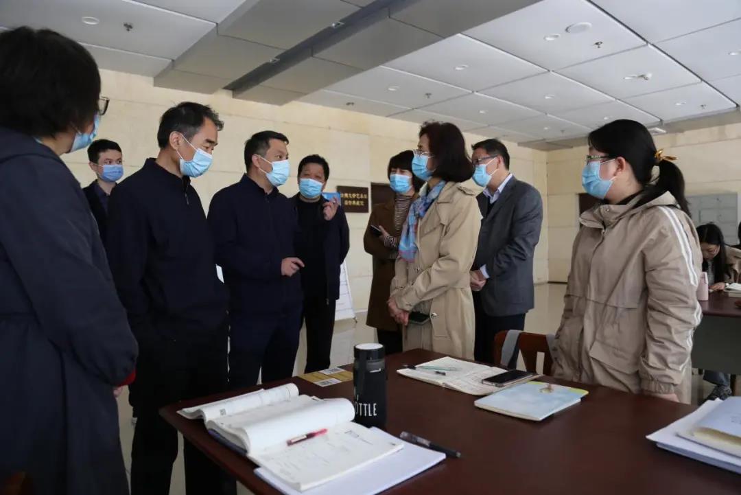 4月13日上午,正值新葡萄官网春季学生返校工作安全有序推进之际,省教育厅科技处处长王晖、省教育厅电教馆馆长陈晓辉、市教育局副局长胡同发一行来新葡萄官网督导检查常态化背景下疫情防控工作和开学复课工作。副校长高颖、周振平陪同检查。