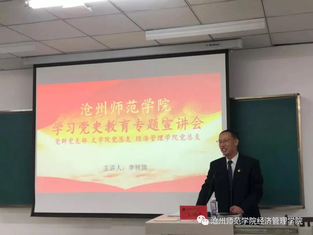 4月22日下午,党群党支部、文学院党总支、经济管理学院党总支联合开展党史学习教育专题宣讲会。马克思主义学院院长李树旗教授以“学党史,悟思想,办实事,开新局 ”为题进行了宣讲。