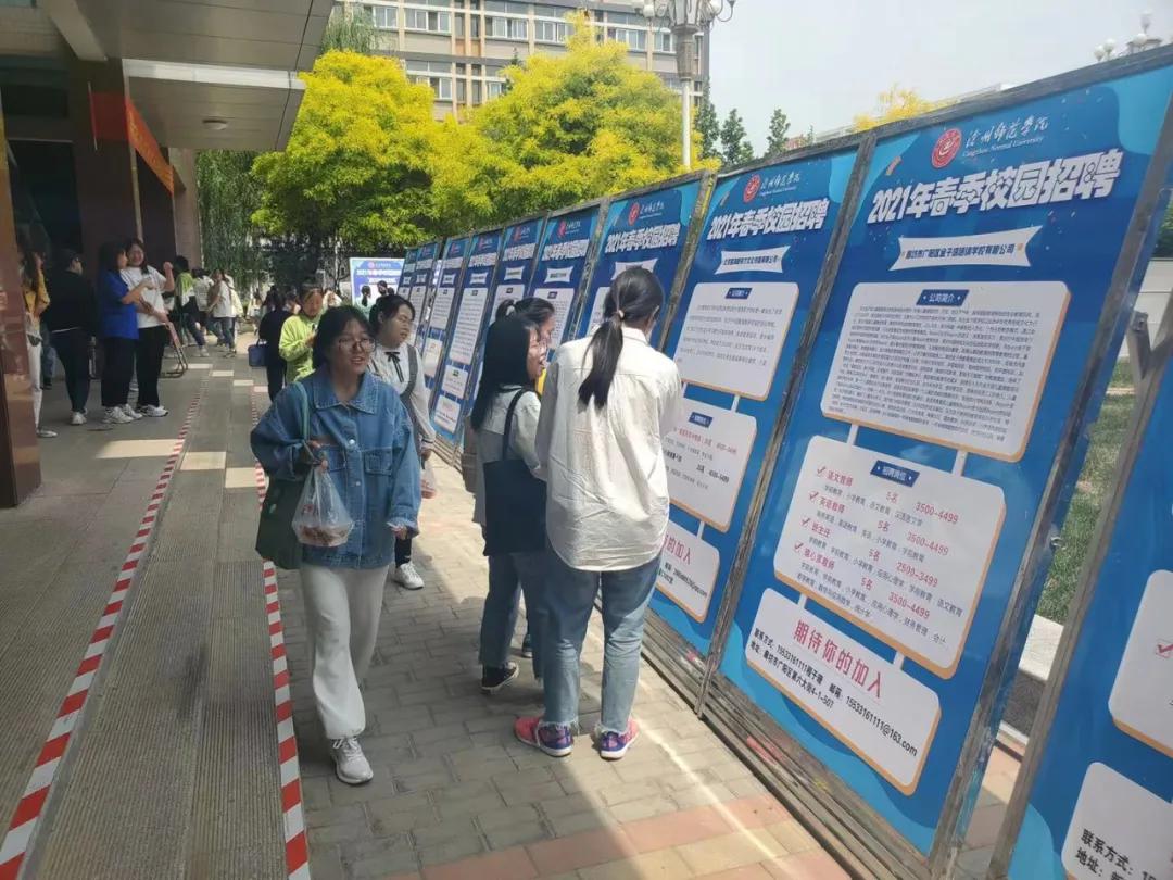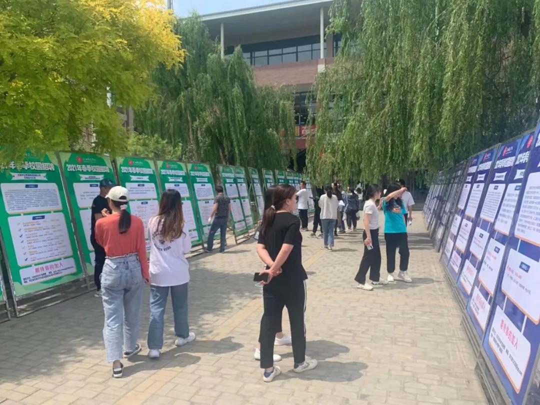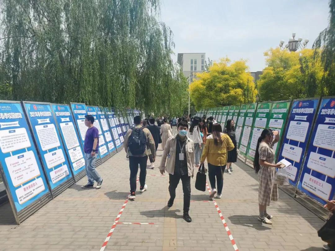 学习党史办实事,服务就业解难题。为积极应对再创历史新高的高校毕业生规模和国内外环境不确定因素增多的就业新形势,新葡萄官网加强工作研判,创新工作思路,在线上开展2021年春季双选会的同时,建立了用人单位线下展示平台,为广大求职学生和用人单位提供了全方位、零距离的招聘服务。日前,大学生创新创业与就业指导中心于学校一餐厅前广场设立了长达百米的用人单位展示长廊。线上数据落地,线下效果加成,招才引智的亮丽长廊成为毕业生走向职场的活力舞台。