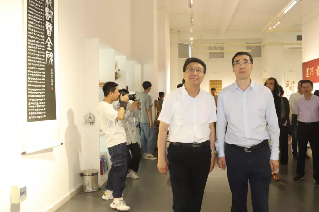 展览得到社会各界的广泛关注和学校领导的大力支持。校党委书记云电军,党委副书记姜忠明,副校长范小振、彭学君,纪委书记谢云岭出席开幕仪式。副校长高颖宣布仪式开幕。沧州市文联名誉主席、西泠印社理事、沧海印社社长韩焕峰,原中国书协刻字委员会副主任、河北省书协副主席张之,沧州市文联党组书记王月周,沧州市政协常委、文联副主席、沧州市书协主席贾徽,沧州市文联副主席、沧州中国画写意艺术研究会会长、沧州市美协副主席王君等嘉宾亲临现场。