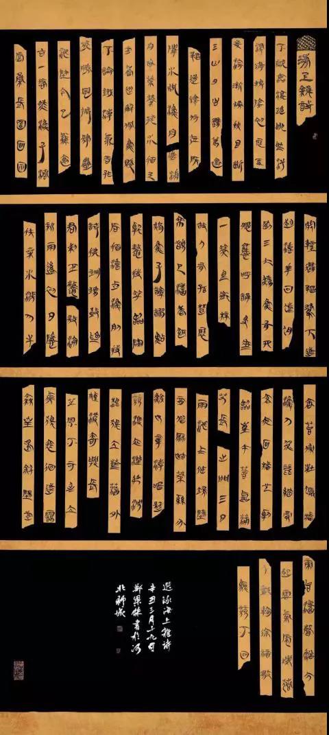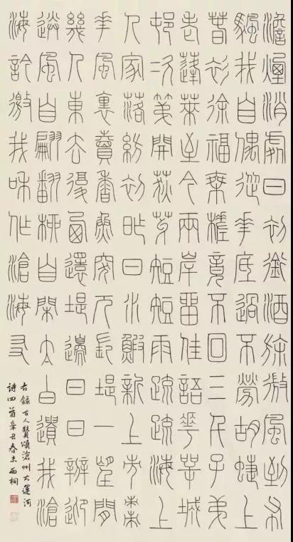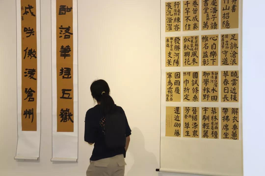 此次展览作品,每人三幅,一幅临摹、两幅创作,涵盖篆刻、隶书、楷书、行书、草书等多种书体。既有对黄庭坚、颜真卿等经典名家名作的临摹再现,也有根植运河、关照现实的创新创造。创造作品内容全部围绕沧州本土和大运河文化,响应国家弘扬大运河文化的号召,以此向母校答卷、向关心爱护书法学专业的业界前辈汇报,向党的百年华诞致敬。