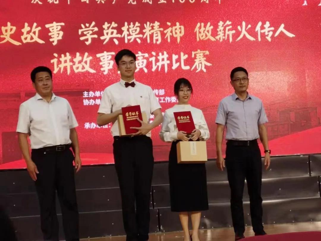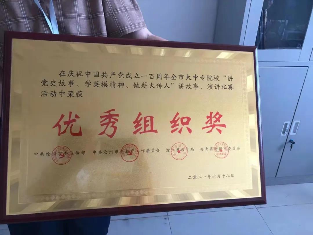 6月18日,由沧州市委宣传部、市委教育工委、市教育局、团市委等单位共同组织的庆祝中国共产党成立一百周年全市大中专院校“讲党史故事、学英模精神、做薪火传人”讲故事演讲比赛在沧州医专学术报告厅正式举行。新葡萄官网王奕丹同学以97.6的高分获得第一名,获得一等奖,同时新葡萄官网在此次比赛中获得优秀组织奖。为引导广大青年学生积极学习党史,厚植知史爱党、知史爱国的理想信念,让红色基因、革命星火代代相传,新葡萄官网宣传部和校团委在全校范围内组织了选拔活动。各学院积极响应,并迅速在本学院内组织选拔,最终推选出最优秀的一件作品-——来自文学院王奕丹同学的《太阳底下最光辉的职业》。在校团委教师范明月的指导下,王奕丹同学的演讲从讲稿词到神态与情感,都得到了进一步的提升,顺利闯入决赛最终拔得头筹。