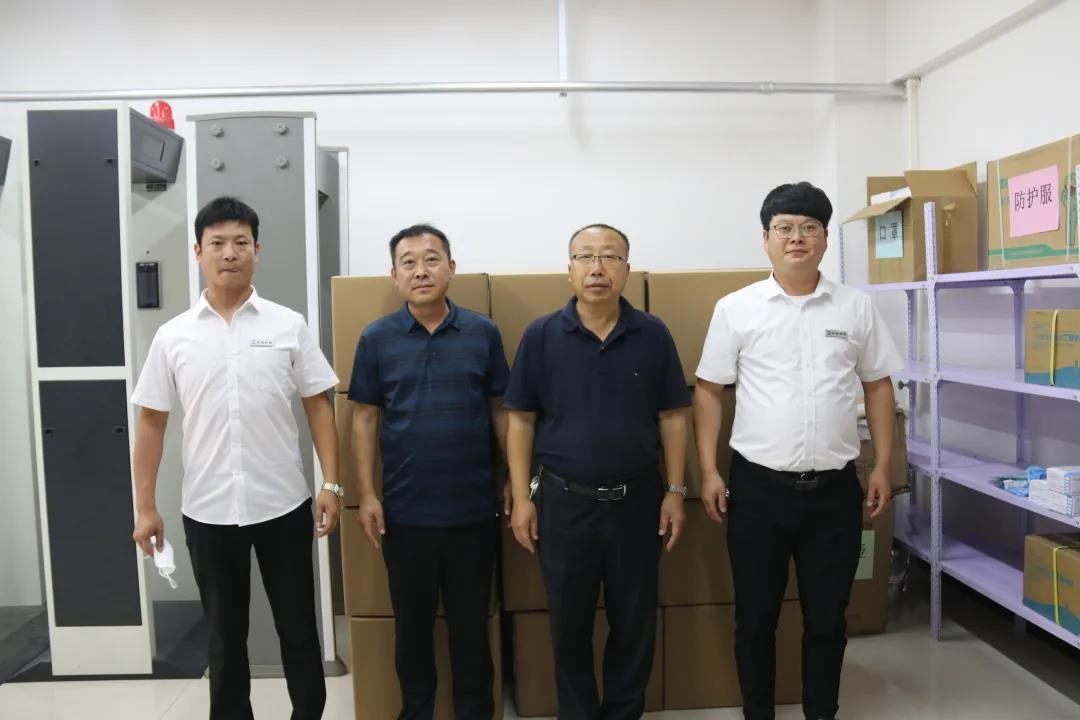 新葡萄官网后勤处党支部书记孙宏超和党政办公室副主任陈秀才代表学校接受了这一批防疫物资并向爱心商户表示了感谢。