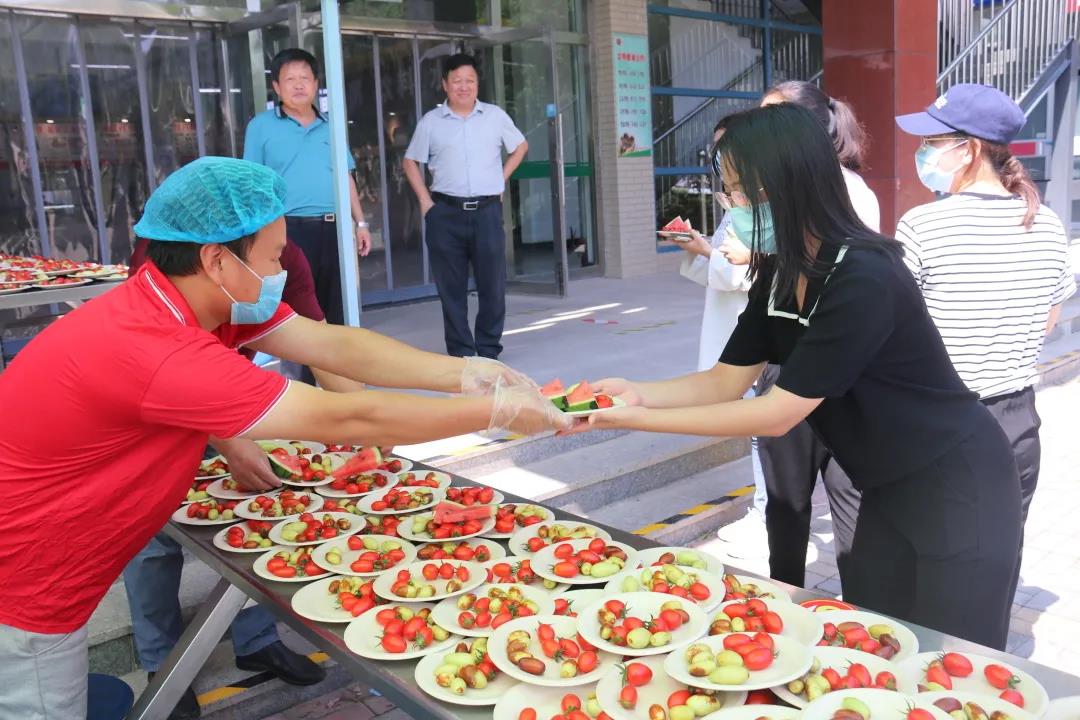 2200斤西瓜、300斤脆枣、300斤小西红柿……为了迎接师院学子返校,9月4日中午新葡萄官网领导、老师在食堂门口,给返校的同学们送上了“甜蜜”的水果辅餐,欢迎他们回家。