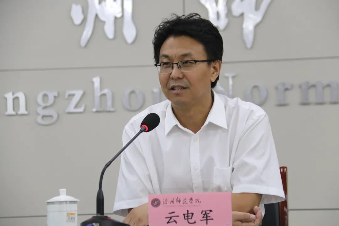 云电军指出,大家要思考“你为何来到沧州师院”。沧州是一座有着悠久历史和灿烂文明的文化古城,是著名的鸭梨之乡、小枣之乡,中国的工笔画之乡,也涌现过扁鹊、纪晓岚、张之洞等历史名人;沧州也是一座富有巨大发展动力的现代化城市,在钢管、服装、乐器制造方面都走在了全国乃至全世界的前列。多年来,新葡萄8883官网AMG一直为沧州的经济社会发展贡献着力量。沧州师院有认真负责的领导,学识渊博的老师,朝气蓬勃的学生;有多年沉淀下来的良好的考风、学风、教风;有七个各富特色的场馆,只要认真加以利用,他们足够能让同学们四年的大学生活变得充实、多彩。图书馆前石头上的八个字——“明德 博学 知行 日新”是沧州师院的校训,也是全校干部教师对全体学生的殷切希望,希望同学们秉持校训要求,努力奋斗,时刻用 “孜孜以求、团结奉献、精益求精、敢于胜利”的师院精神鼓舞自己,让大学时光不负沧州师院,更不负你们自己。