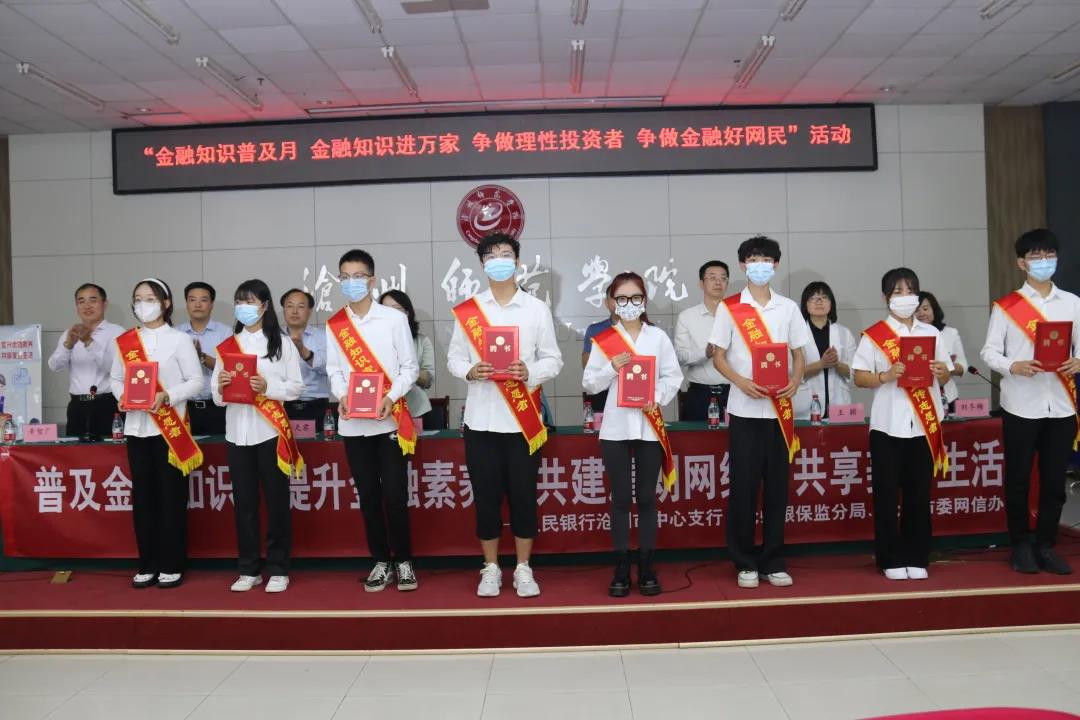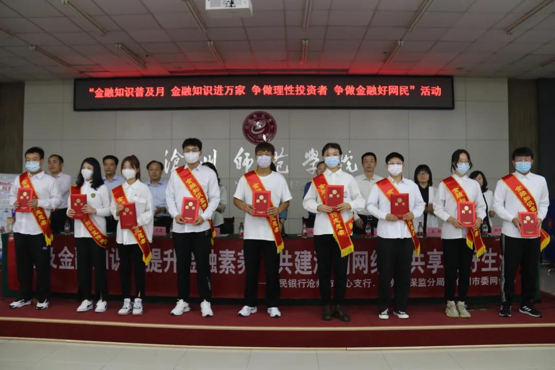 活动上,交通银行沧州分行的王爱丽做了交通银行金融知识宣传讲座;新葡萄官网17名同学获颁金融知识宣传志愿者聘书;学生从慧作为学生志愿者代表在活动上做了交流发言;曹璇等三名同学表演了金融安全主题情景剧——“中奖了”。