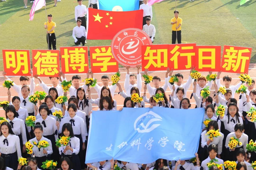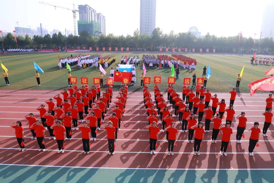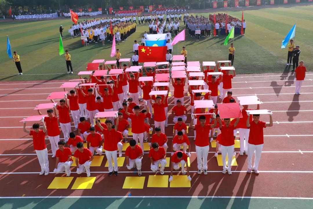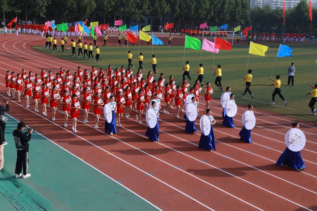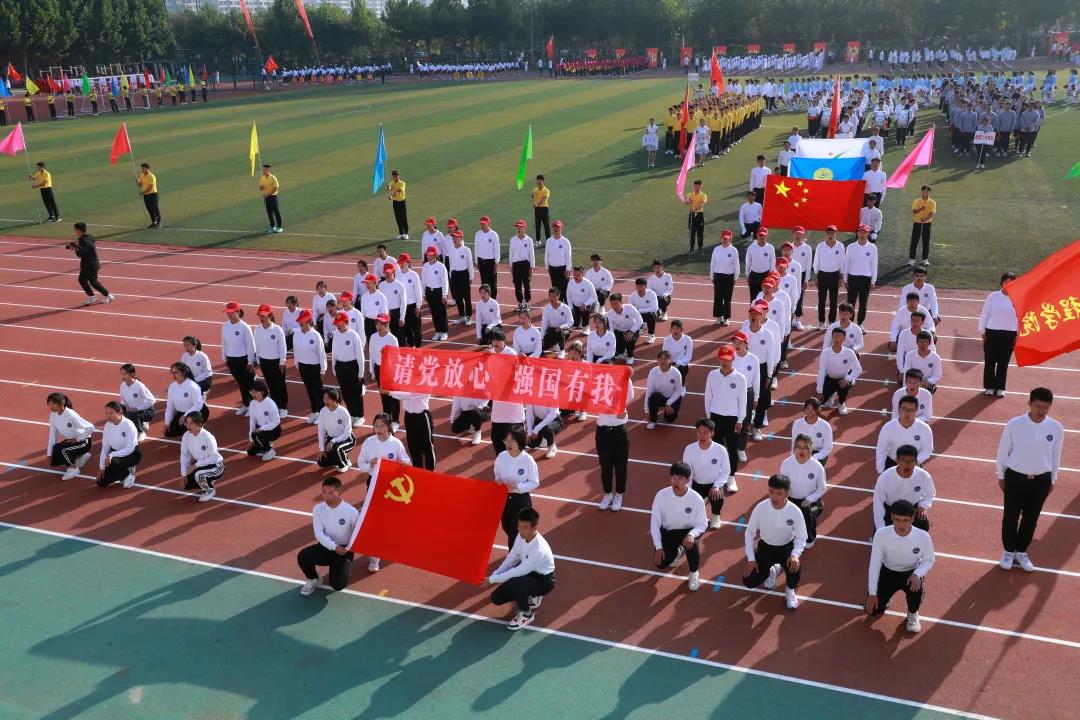 国旗方队、校旗方队、会旗方队、鼓乐队、彩旗方队、裁判员队、教职工代表队和各学院方队迈着整齐划一的步伐依次走来。精心设计的列队表演、各具特色的队服标语,绽放了活力,展现了风采。“请党放心,强国有我”的青春誓言响彻师院。