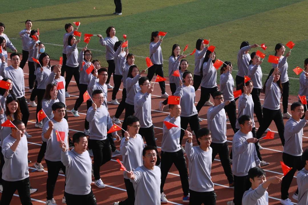 所有师生面朝国旗,立正注目,将赓续百年初心,担当育人使命的誓言随鲜艳的五星红旗冉冉升起。