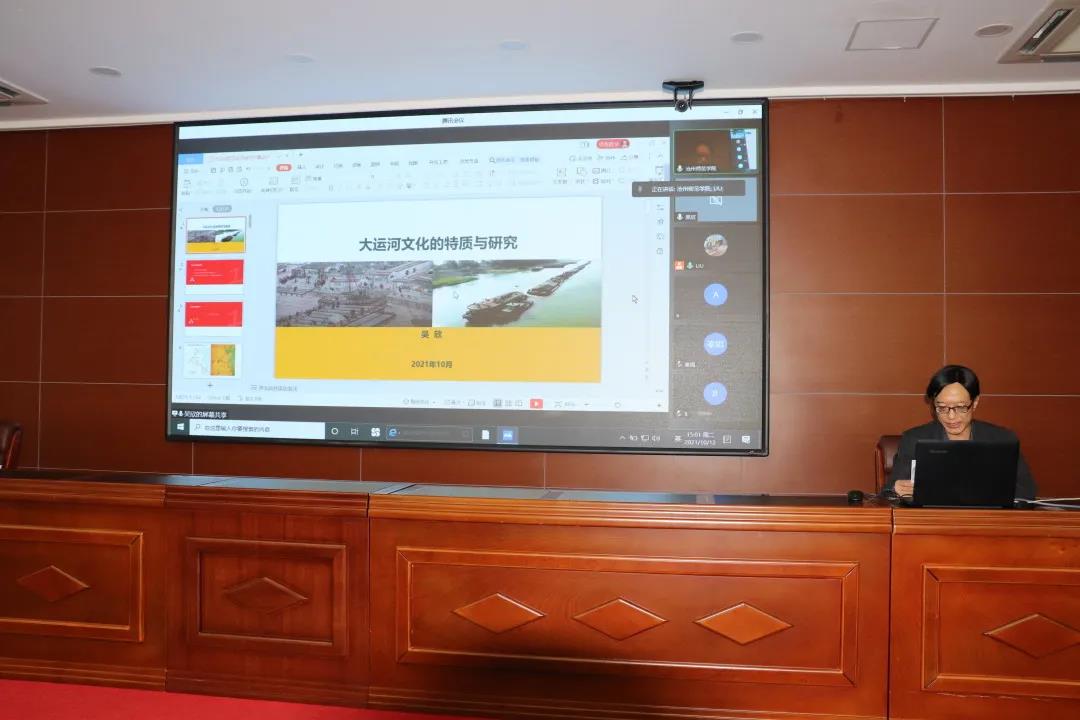 为深化新葡萄官网大运河研究中心相关成果,保护好、传承好、利用好大运河文化,10月12日,新葡萄官网特邀烟台大学吴欣教授举办了一场关于“大运河文化的特质与价值”的线上专题学术讲座。副校长范小振现场聆听讲座。