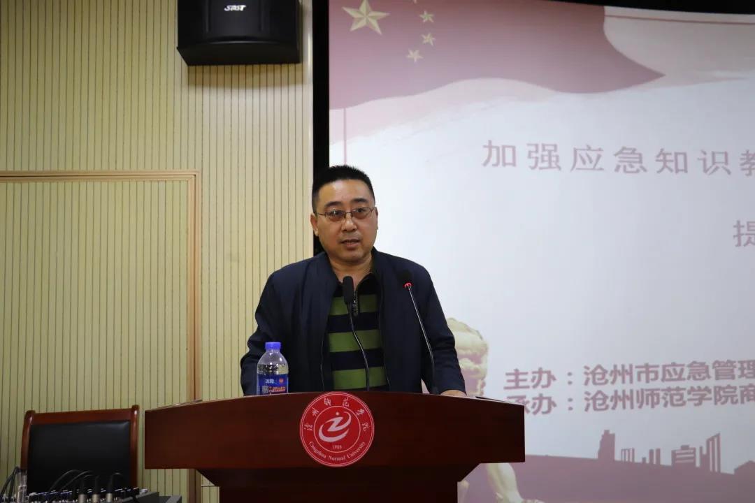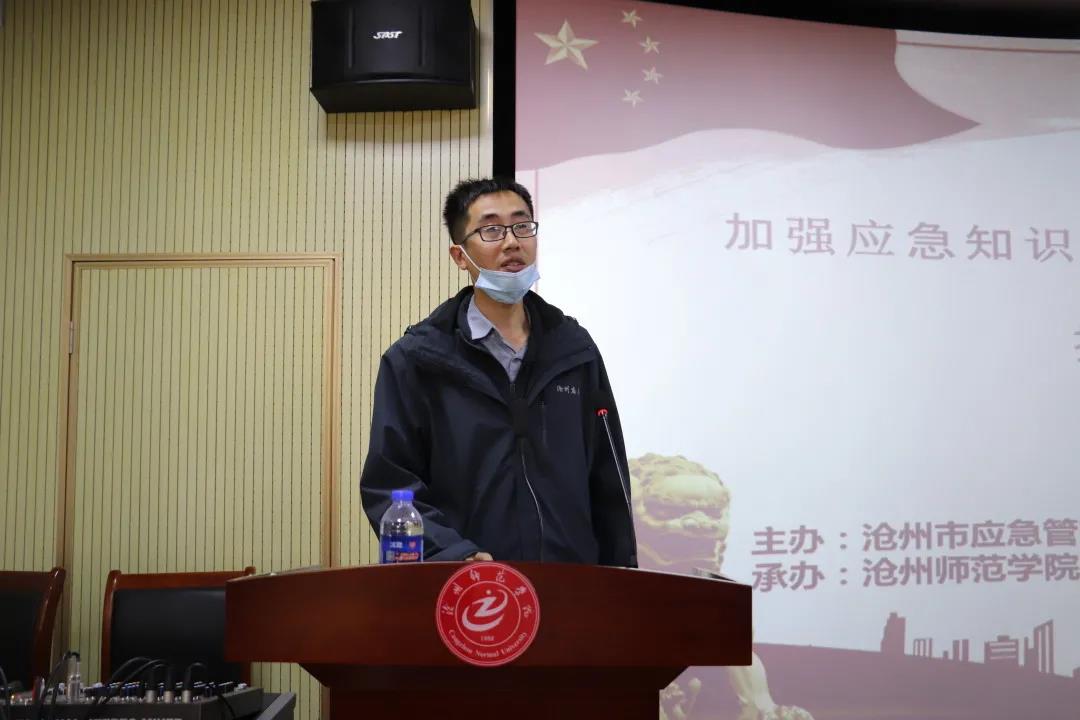为有效提高新葡萄官网学生的应急处理能力,切实提升校园安全水平,10月26日,沧州市应急管理局、沧州市教育局和新葡萄官网安全处共同举办了应急安全知识教育宣传活动。沧州市应急管理局地震与地质灾害防御救援科副科长刘建为在场学生讲授地震和震后处置知识。新葡萄官网安全处处长单勇主持活动,商学院党总支书记毕卫华带领该院部分学生参加活动。