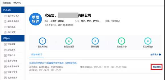 3.单位预定展位,发布求职信息。填写展位申请报名表,并添加职位需求,选择职位,点击提交完成报名。经校方审核后即可参加本次双选会,单位可以接收和筛选网络招聘会简历,并邀请求职者进行在线面试。