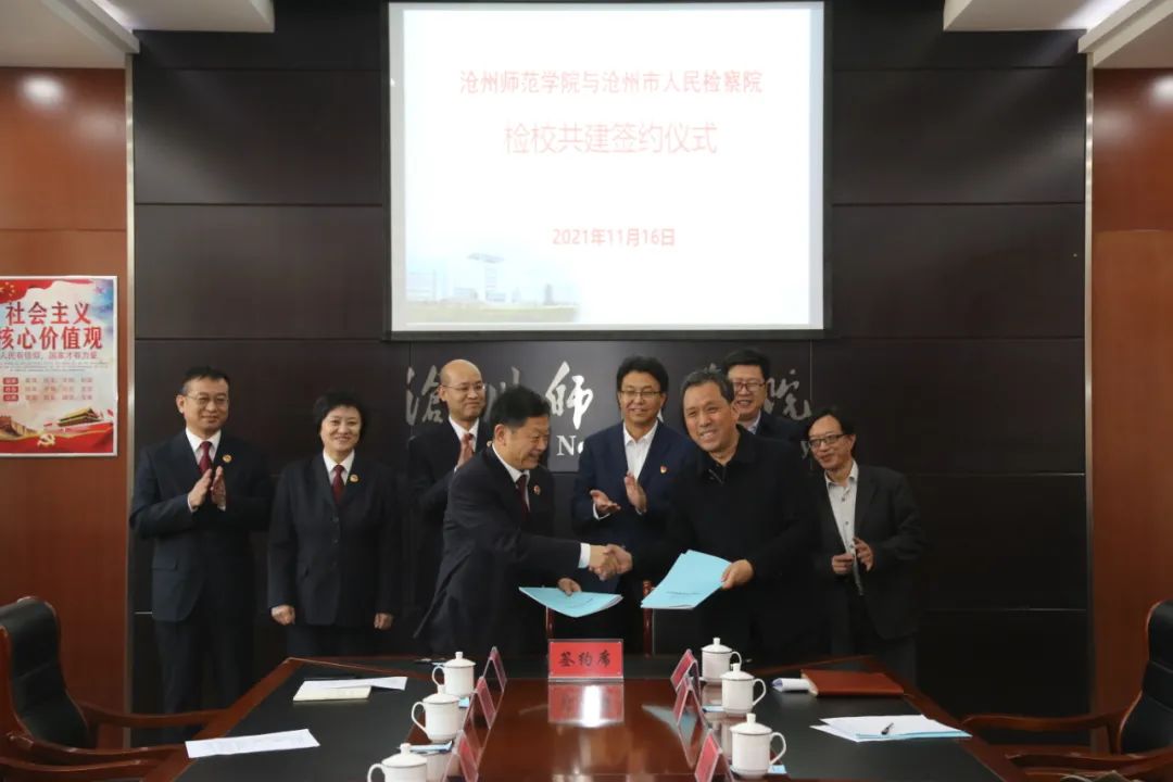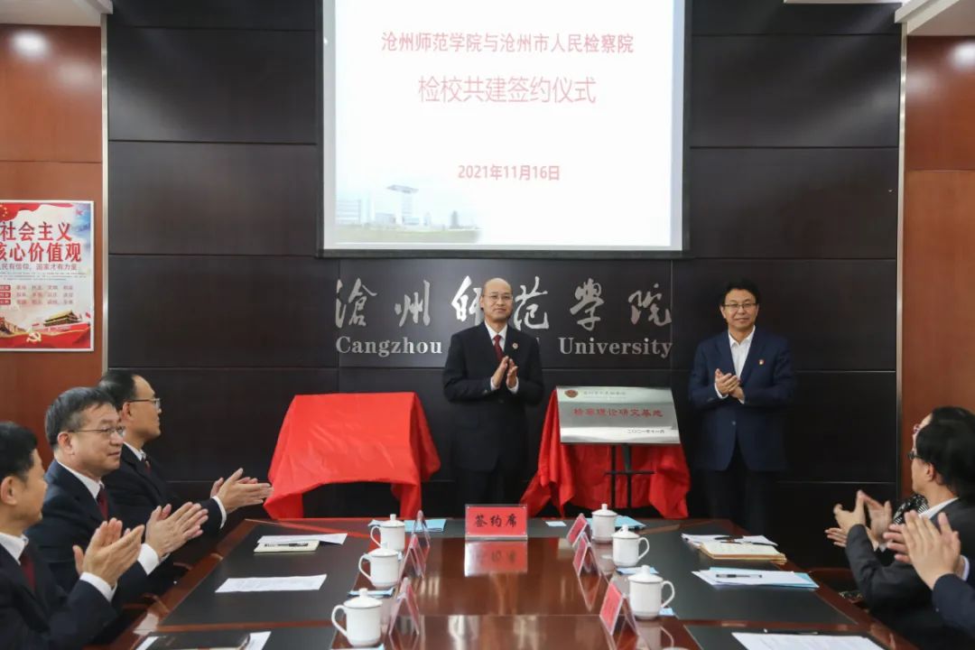 为培养高素质法学专业人才,促进法学教育与司法实践良性互动,11月16日,市检察院与新葡萄8883官网AMG“检校共建”签约仪式在八楼会议室举行。市检察院党组书记、检察长白振平和新葡萄官网党委书记云电军出席签约仪式并共同为“新葡萄8883官网AMG教学科研实习基地”“沧州市人民检察院检察理论研究基地”揭牌。市检察院党组成员、副检察长刘连臣与新葡萄8883官网AMG党委常委、副校长范小振代表检校双方签订战略合作框架协议书。市检察院党组成员、政治部主任庞丽敏和检校双方有关领导及教师代表参加活动。签约仪式由校党委常委、副校长彭学君主持。