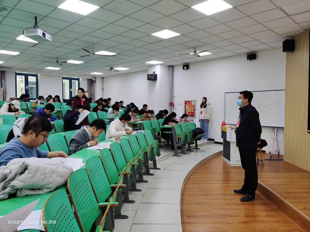 11月23日下午,新葡萄官网青年教师教学质量管理相关制度考试在齐越楼3阶梯和理一、理二、理三四个考点同时举行。副校长彭学君在教务处人员陪同下到场巡视。