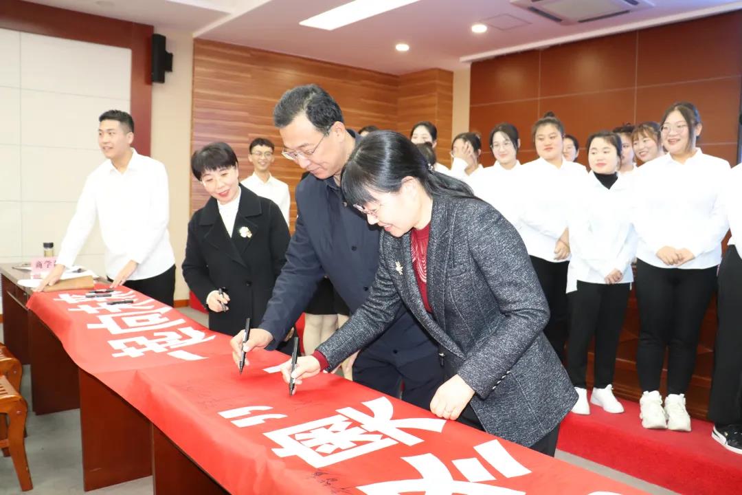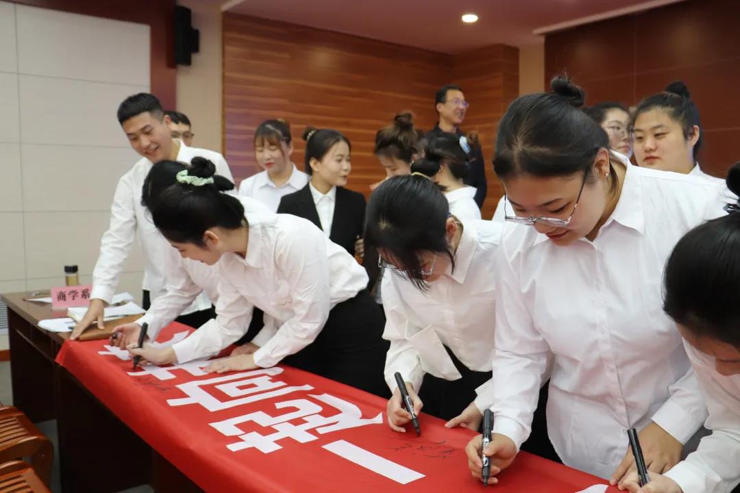 教务处、学生处、团委负责人,商学院全体领导教师共同参加仪式。新葡萄官网领导与助力冬奥代表队同学在条幅上签名,师院学子,让每个追梦冬奥的师院人梦想发芽,以冰雪之名,让师院学子的热情在张家口开出绚丽之花,全民冰雪我们一路同行!