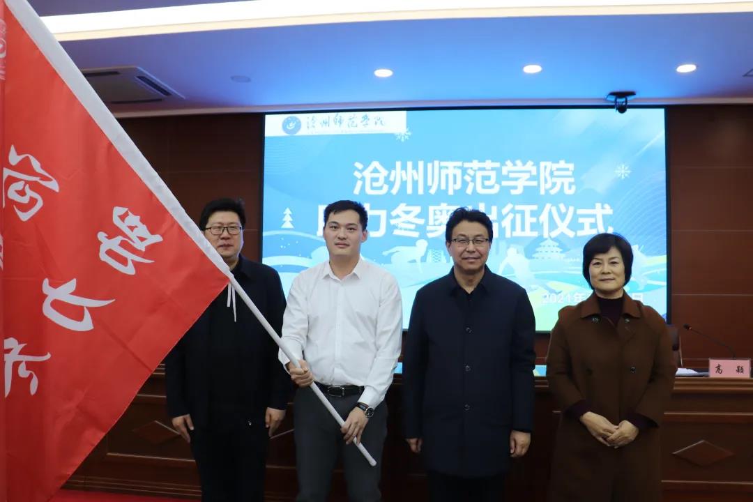 云电军为助力冬奥代表队授旗。云电军温情嘱托同学们,此次参加冬奥服务的每一位同学都要以习近平新时代中国特色社会主义思想为指引,不负嘱托,不辱使命,发挥青年优势,释放青春激情,向河北展现好沧州,向中国展现好河北,向世界展现好中国,以实际行动为服务保障本届盛会贡献青春力量!