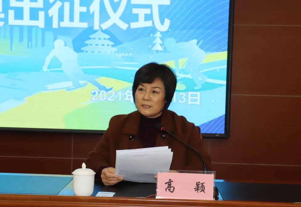 高颖主持仪式,她表示,冬奥是一次世界聚焦的体育盛会,办好冬奥会也是河北省的三件大事之一,校党委对此次帮扶工作高度重视,精心筹划。同学们要牢记学校的嘱托,奋发作为,将课堂搬入赛场,取得优异成绩,将自己融入冬奥,在这一特殊赛道上向世界展示出中国大学生的精神风貌,为学校争光。