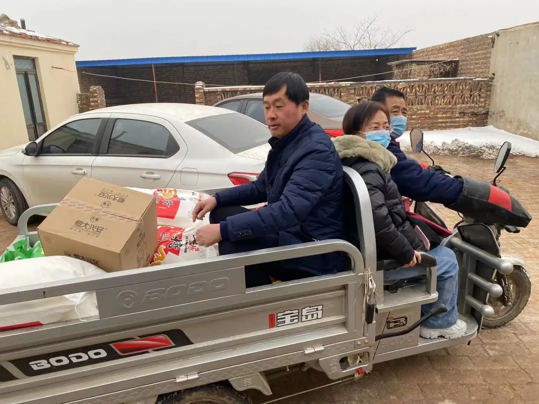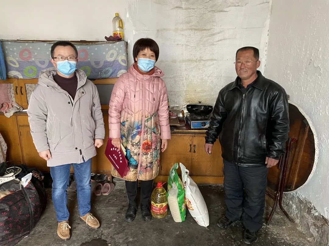 1月25日,新春佳节来临之际,新葡萄官网驻孟村县牛进庄乡东赵河村工作队和学校帮扶责任人入户走访,为帮扶群众送上食用油、面粉、大米等生活物资,也带去了党的关怀和问候。