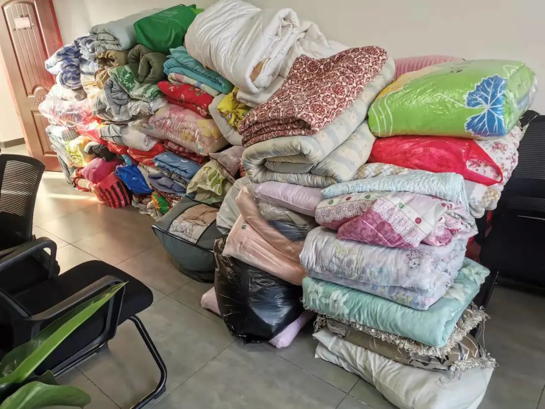 在学校党委的坚强领导和全体教职员工的大力支持下,工会委员会倡导的棉被捐赠活动,一天内共收到教职工捐赠棉被等物品450余件!