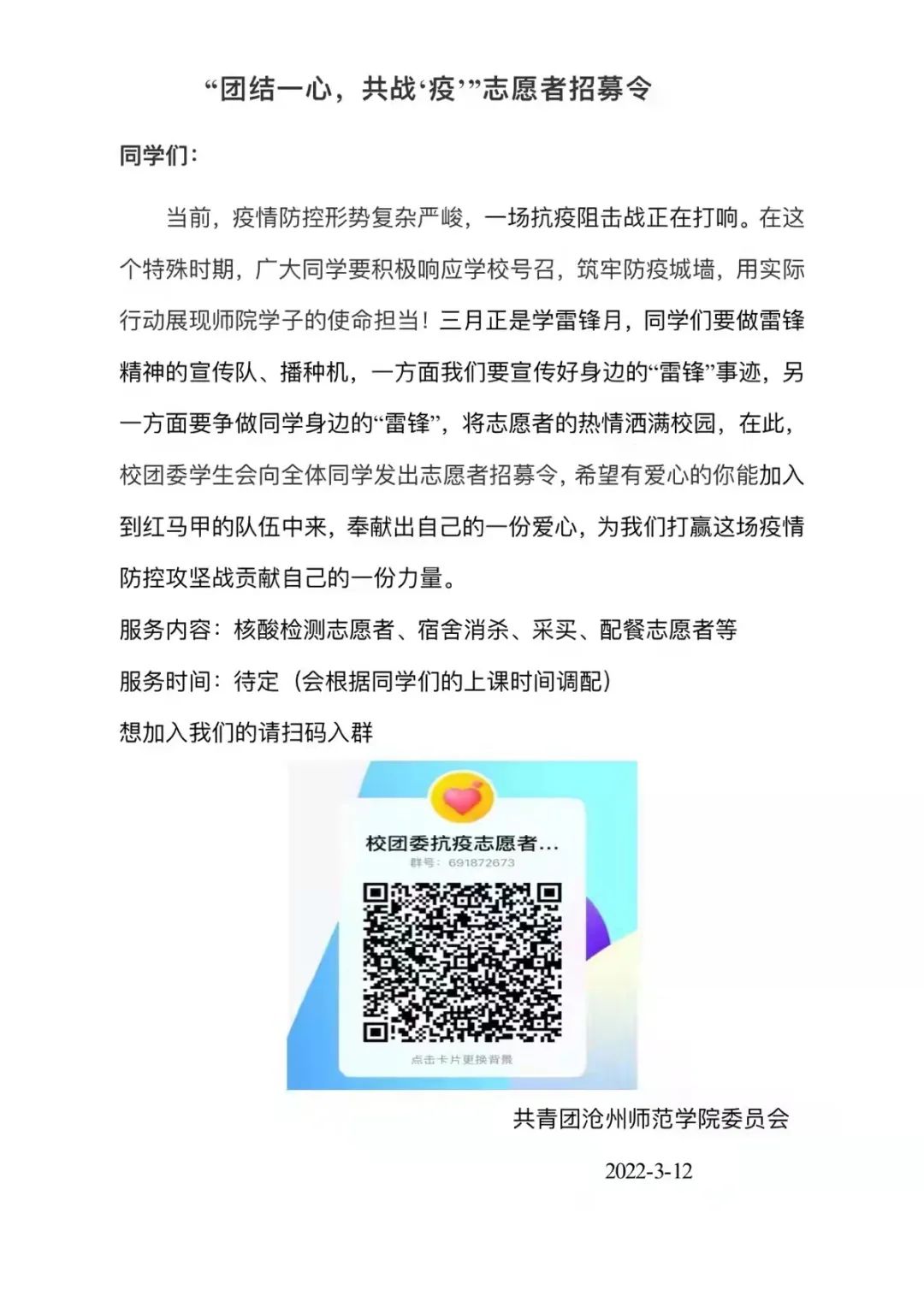 我们始终坚信,只要万众一心、同舟共济,疫情终将退散,我们必定胜利,沧州加油,师院加油!
